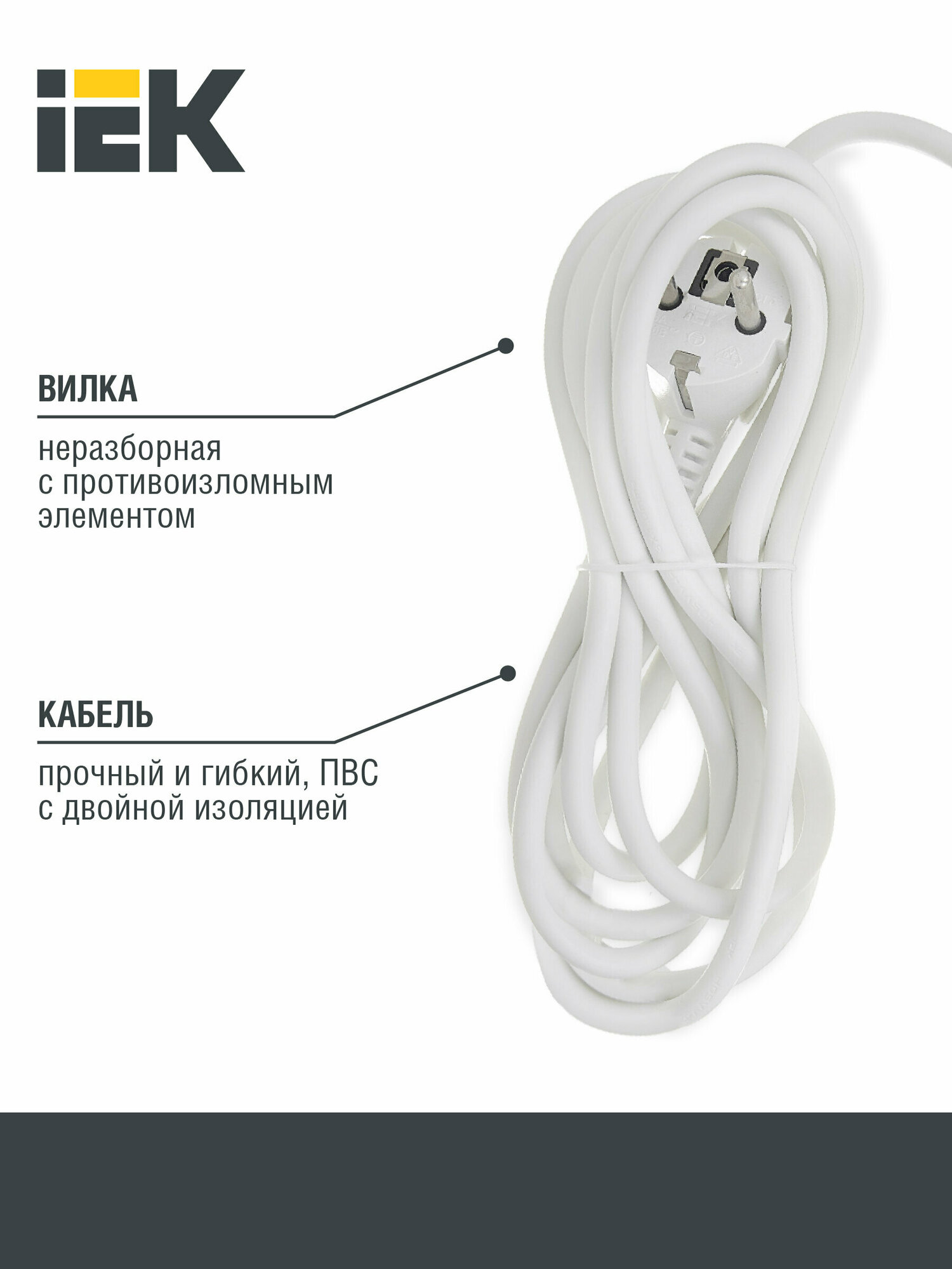 Удлинитель IEK У03, ПВС 3 x 1 мм², с заземлением, 3 розетки, 3 м, белый
