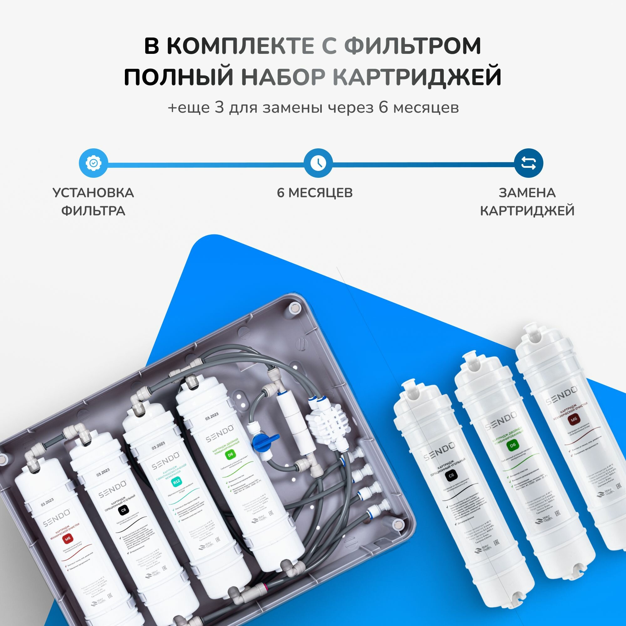 Фильтр обратного осмоса Sendo Aqua A12 + набор сменных картриджей K3+К4 (7 шт.)