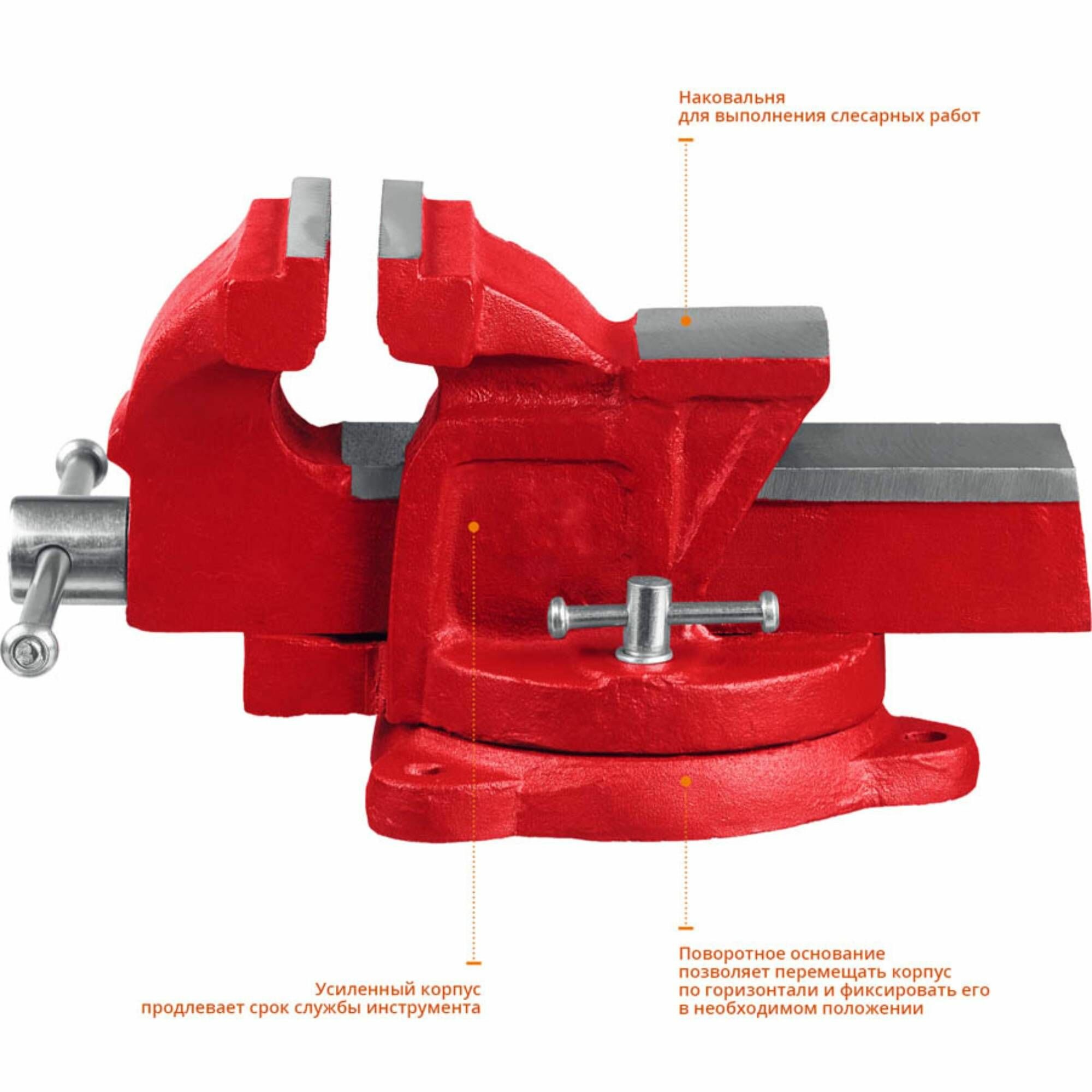 Sparta Тиски слесарные Sparta, 100 мм, поворотные, с наковальней