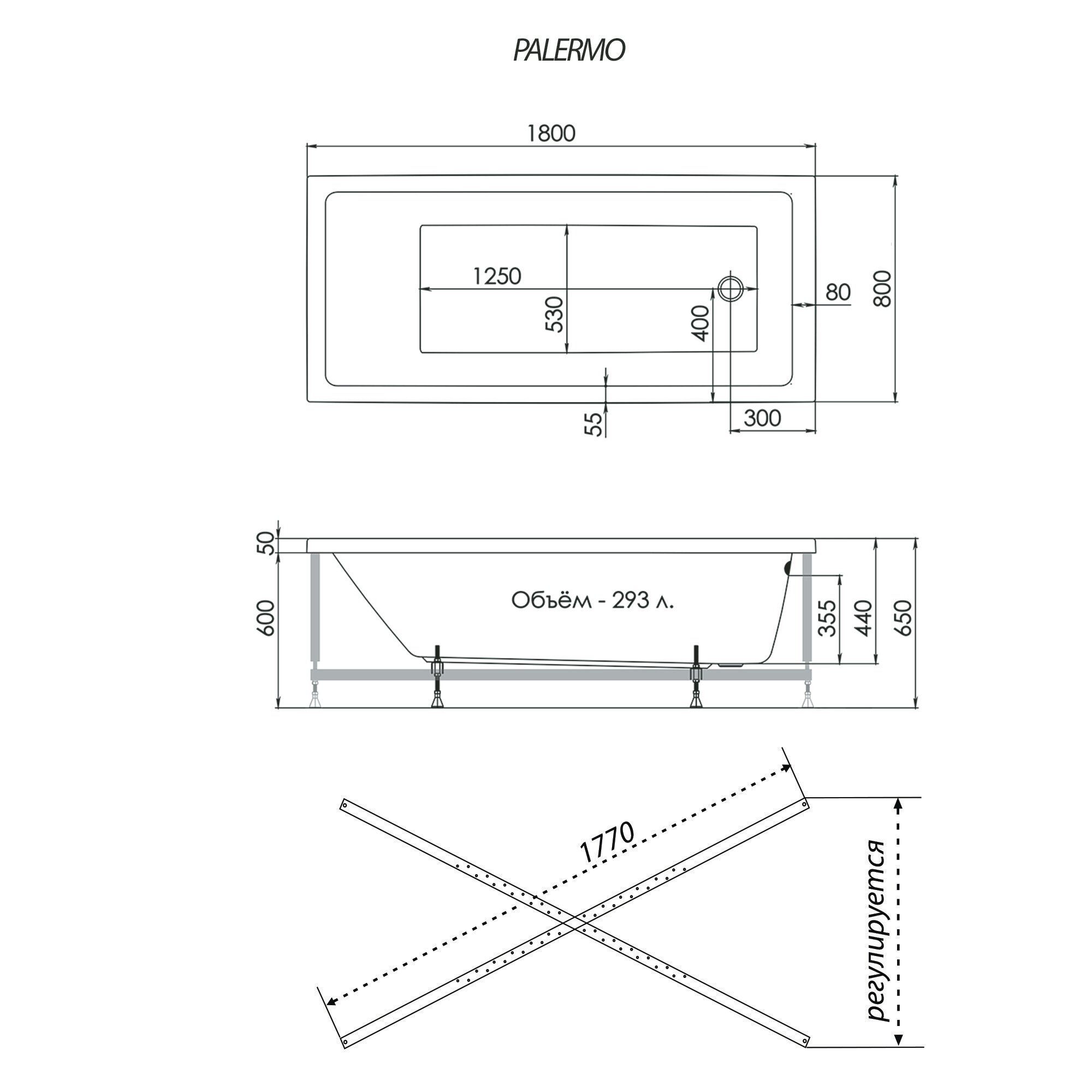 Акриловая ванна 1ACReal Palermo 180х80 на каркасе (Щ0000042367)