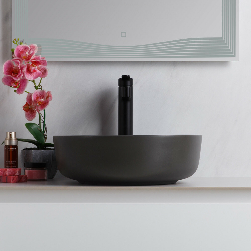 Раковина накладная керамическая, круглая, серая матовая, BB1315-H311, 410x410x130