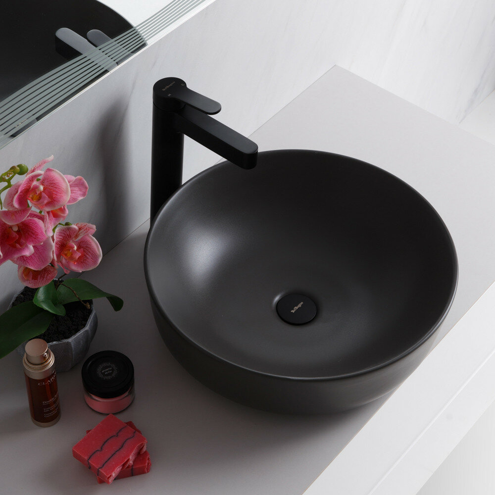 Раковина накладная керамическая, чёрная матовая,BB1315-H301
