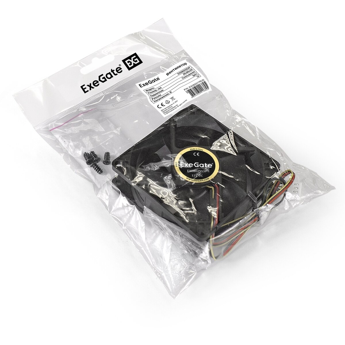 Вентилятор для корпуса Exegate EX08025S3P 80x80x25мм (EX283377RUS)
