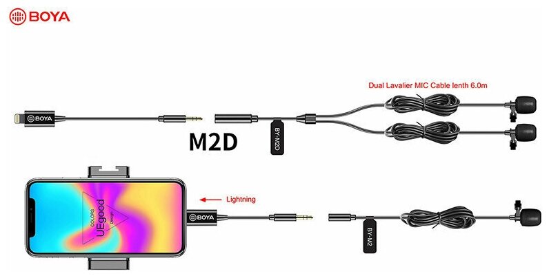 Микрофон петличный Boya BY-M3D двойной Тype-C 6 м