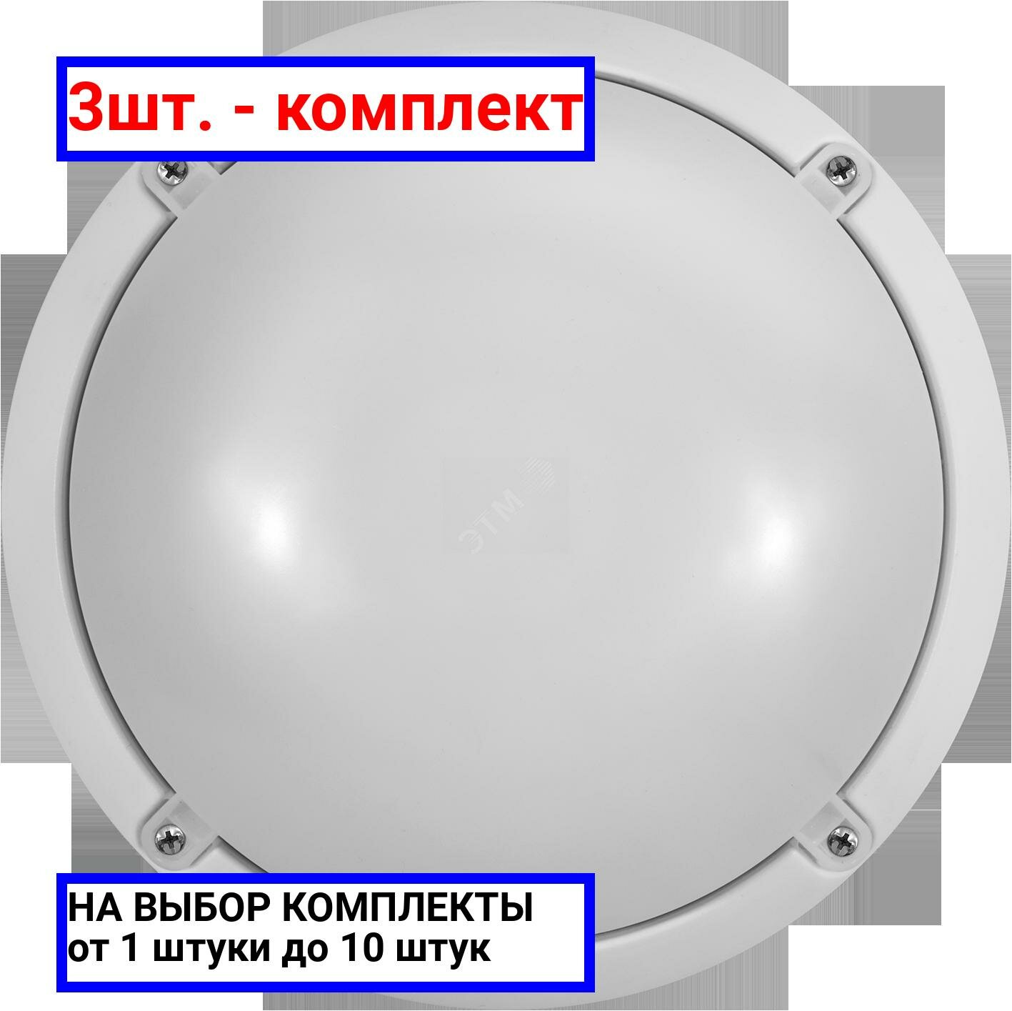 Купить 3шт. - Светильник светодиодный ДБП-7w 6500К 520Лм круглый пластиковый IP65 белый / онлайт; арт. 61193 OBL-R1; оригинал / - комплект 3шт