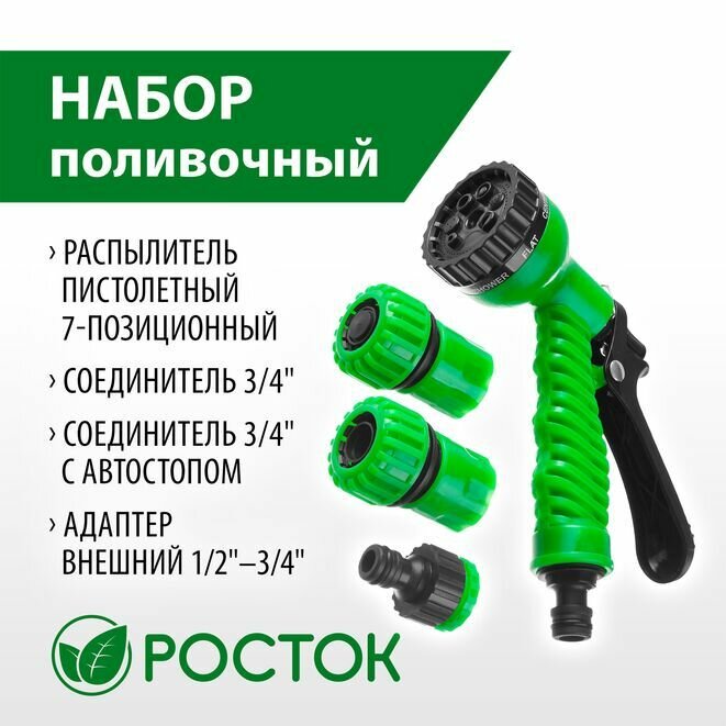 Набор поливочный Росток: Распылитель пистолетный 7 поз., 2 соединителя 3/4", адаптер внешний