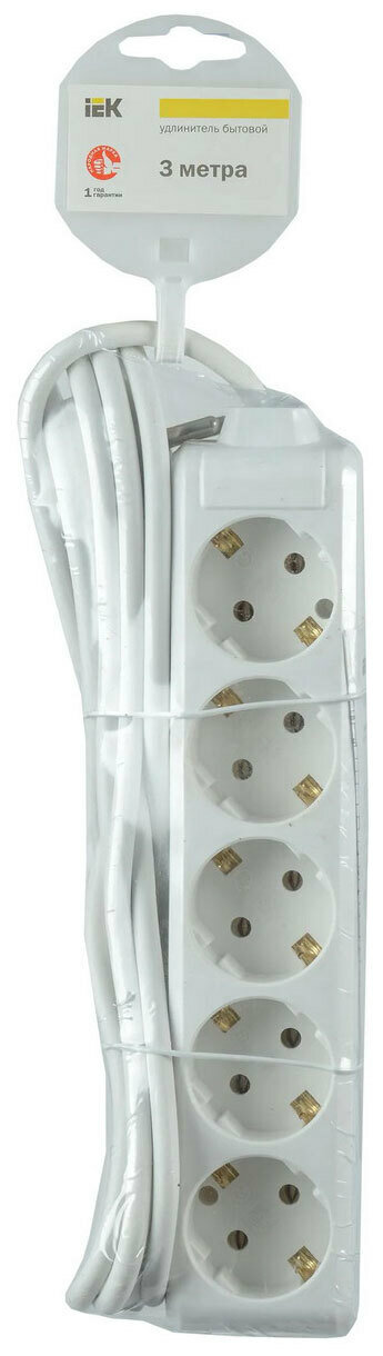 IEK Удлинитель 5-мест 5м ПВС 3*1 белый IEK УО5