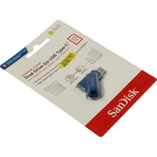Купить USB флешка Sandisk 32Gb Ultra Dual Drive Go blue USB 3.1 gen 1/ USB Type-C 150 Mb/s