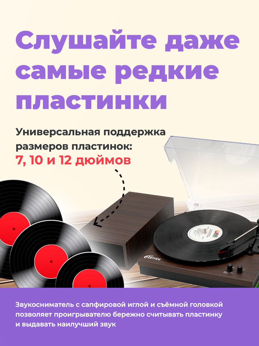 СохранитьRitmix LP-340B dark wood проигрыватель винила интересное: