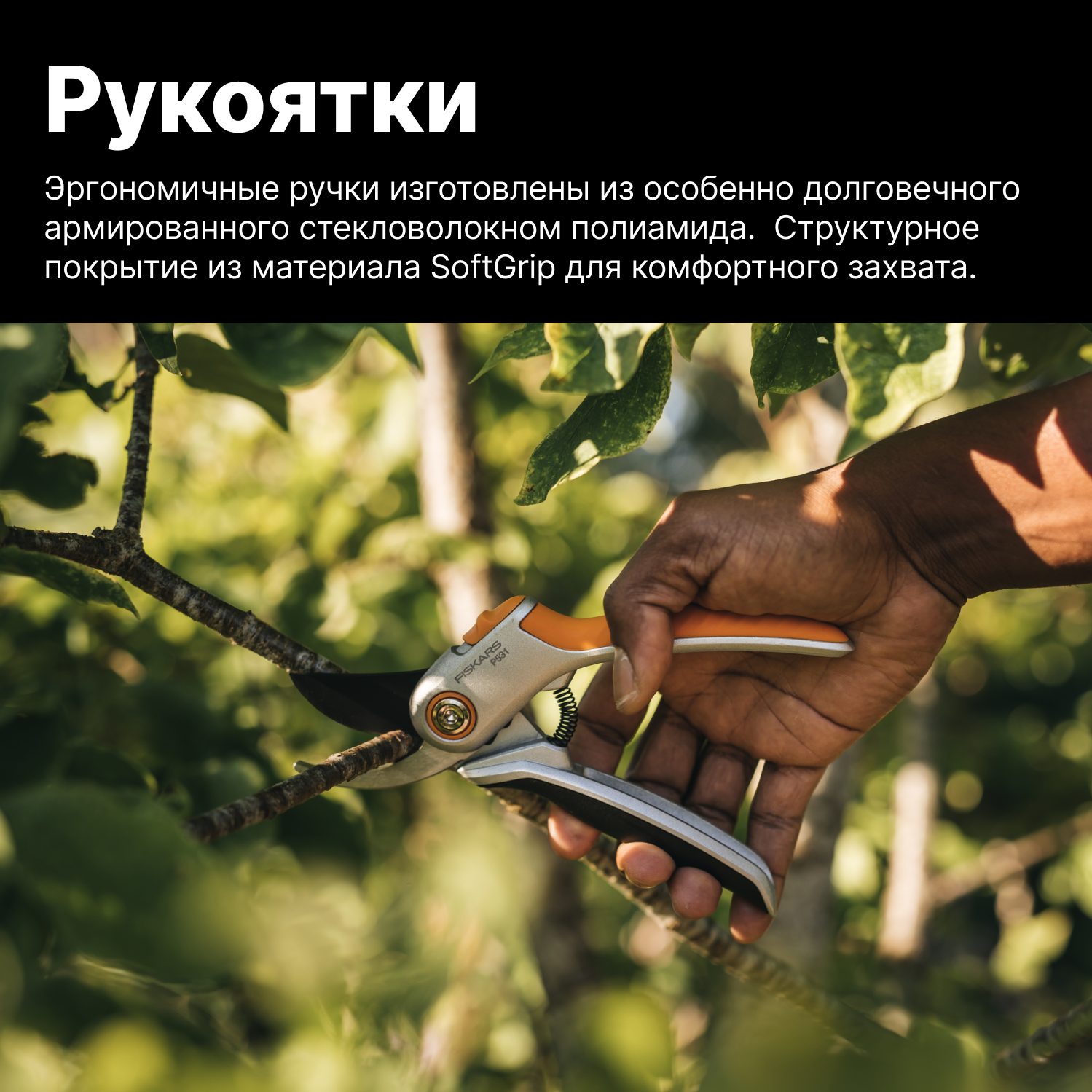 Секатор FISKARS Plus P531 серебристый/черный/оранжевый