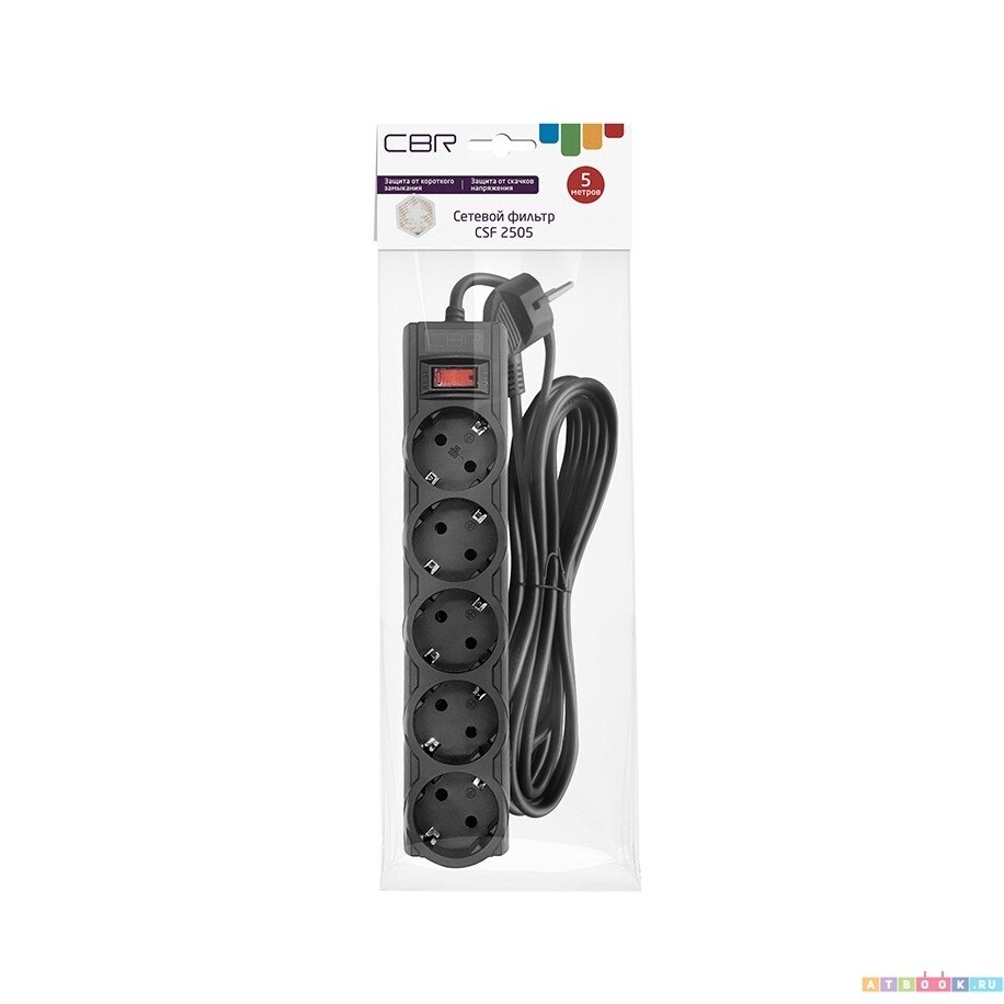 Cbr сбр сетевые фильтры Сетевой фильтр CSF 2505-5.0 Black PC, 5 евророзеток, длина кабеля 5 метров, цвет чёрный пакет
