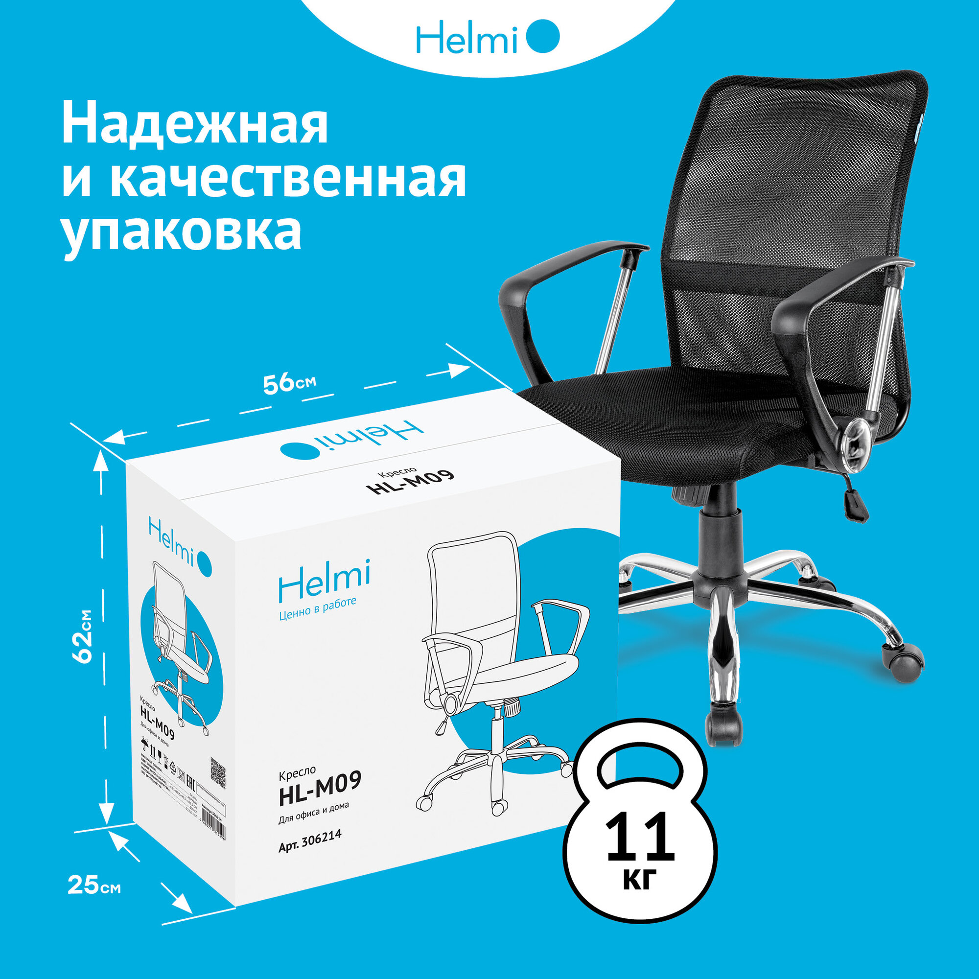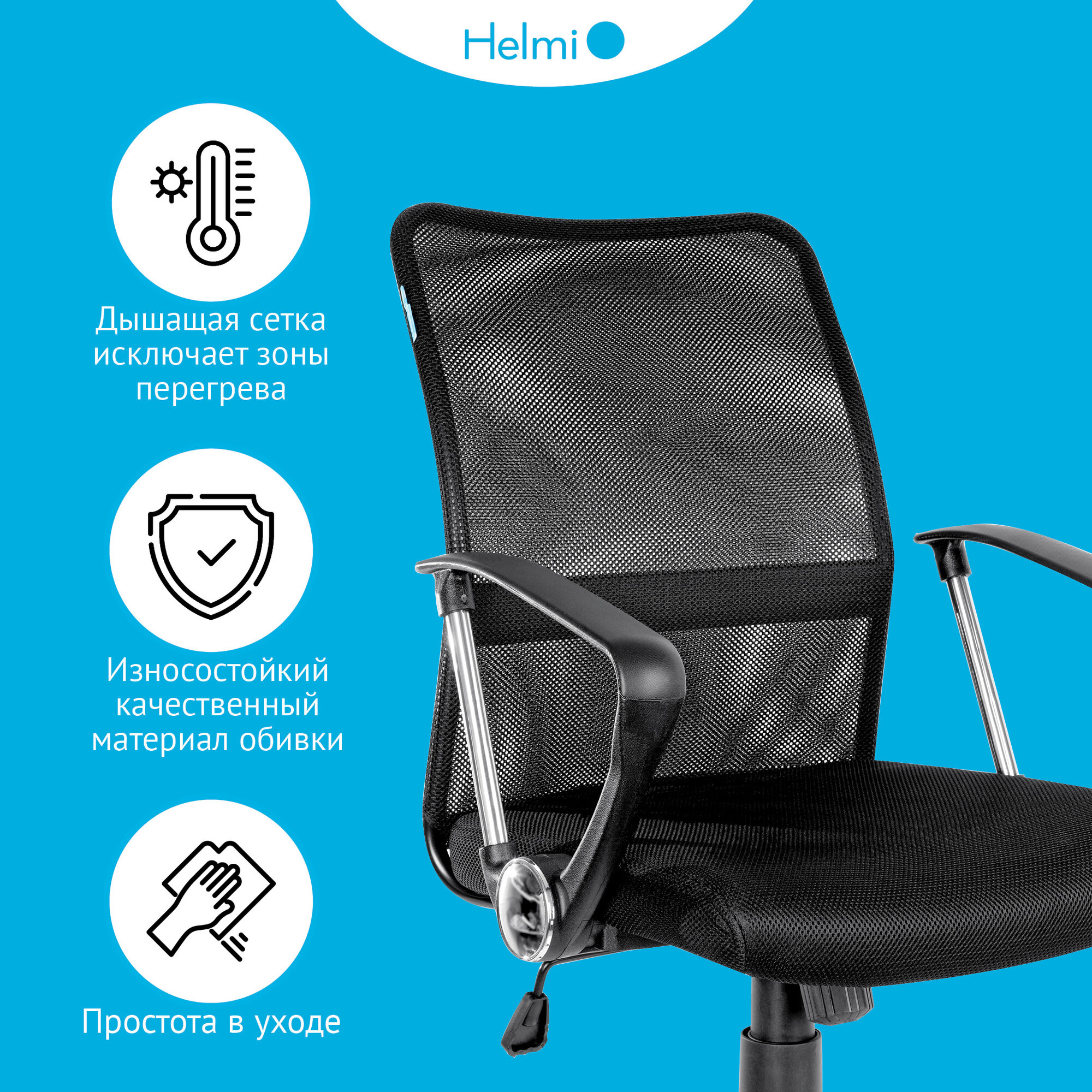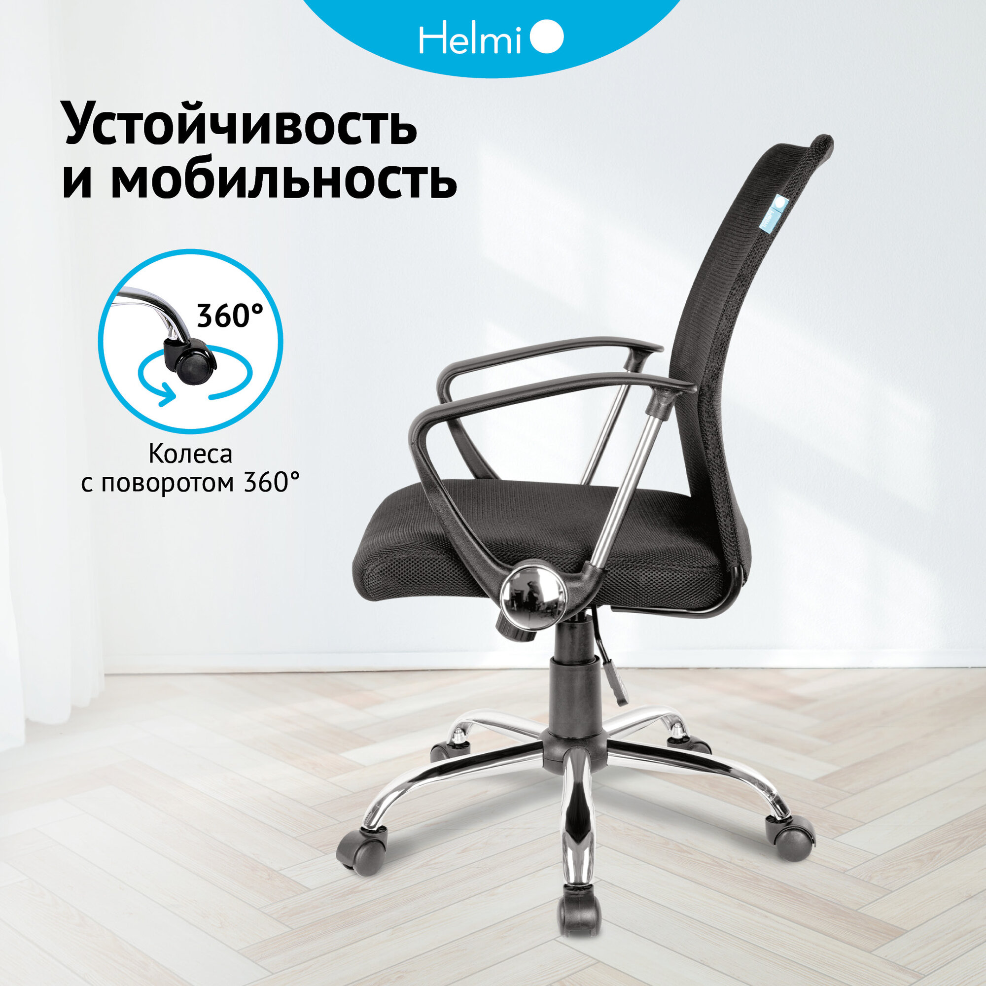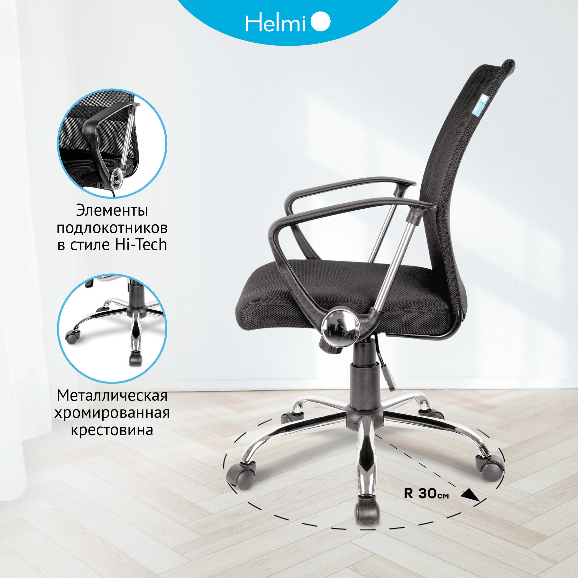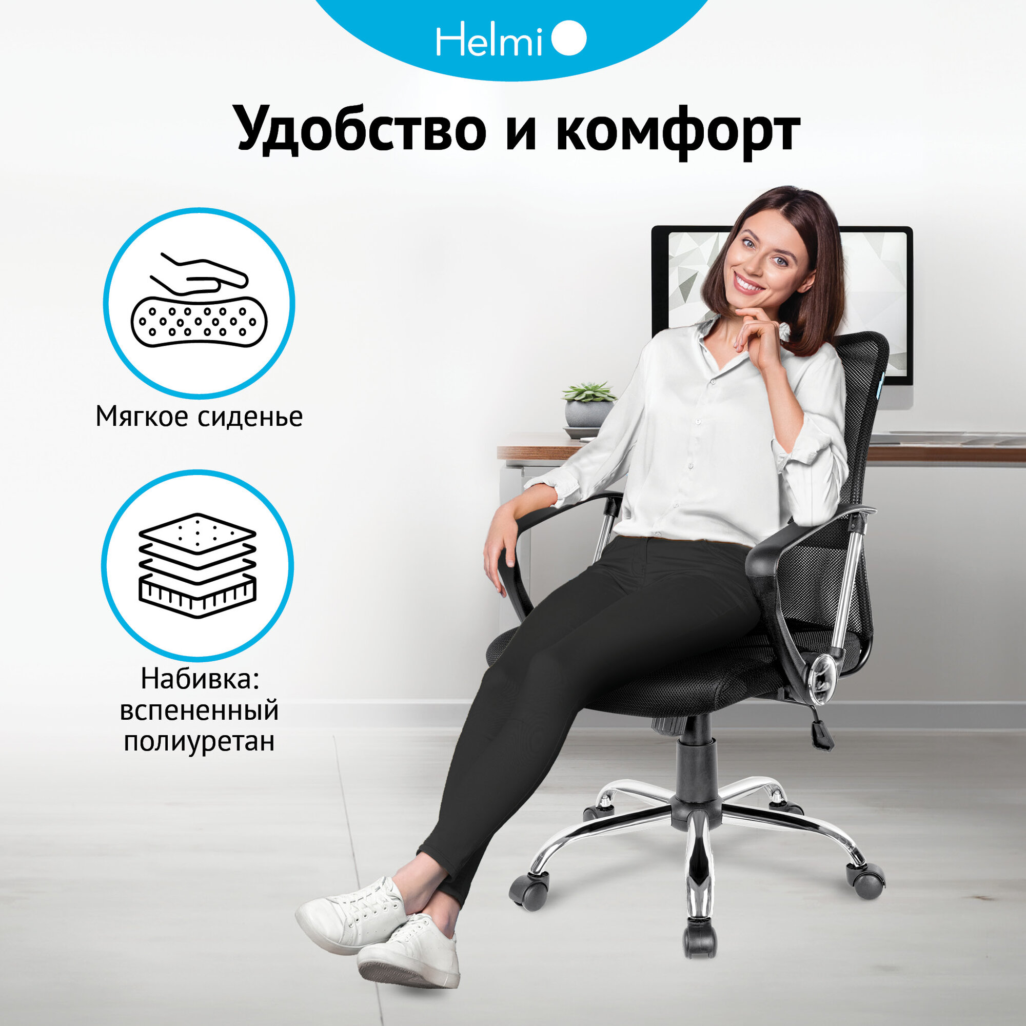Кресло офисное Helmi HL-M09, ткань/сетка черная, механизм качания, хром