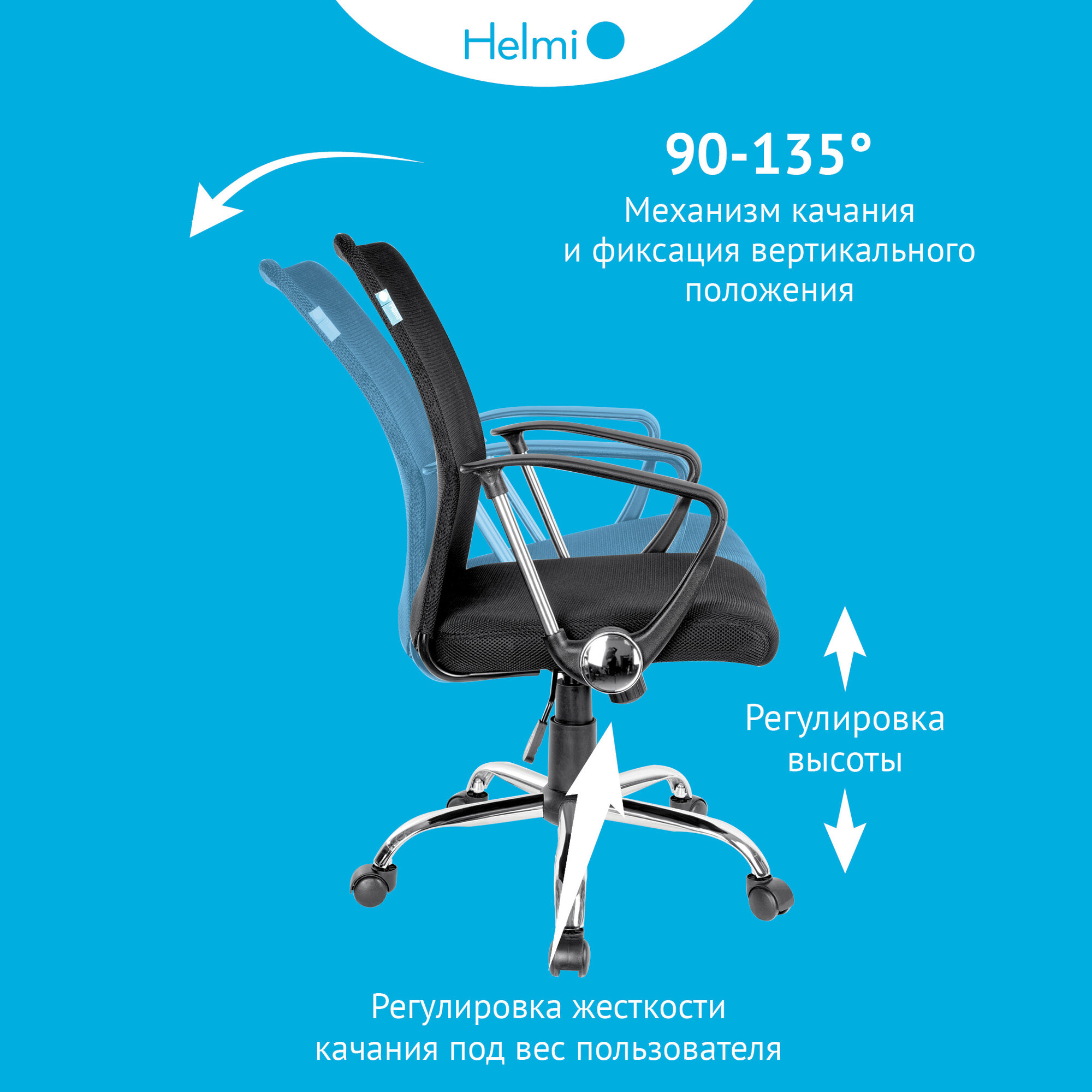 Кресло компьютерное офисное Helmi HL-M09 Instance, стул для оператора ткань/сетка, с механизмом качания на колесиках интересное: