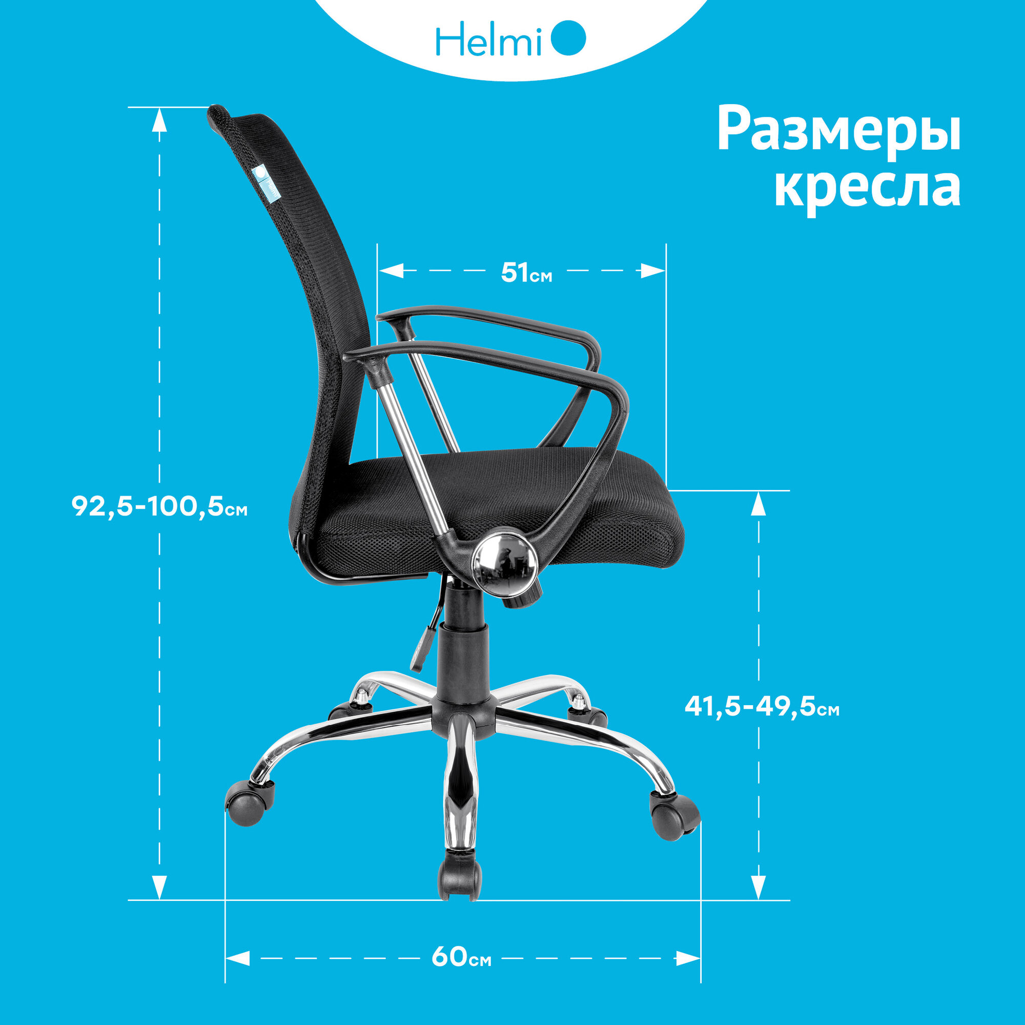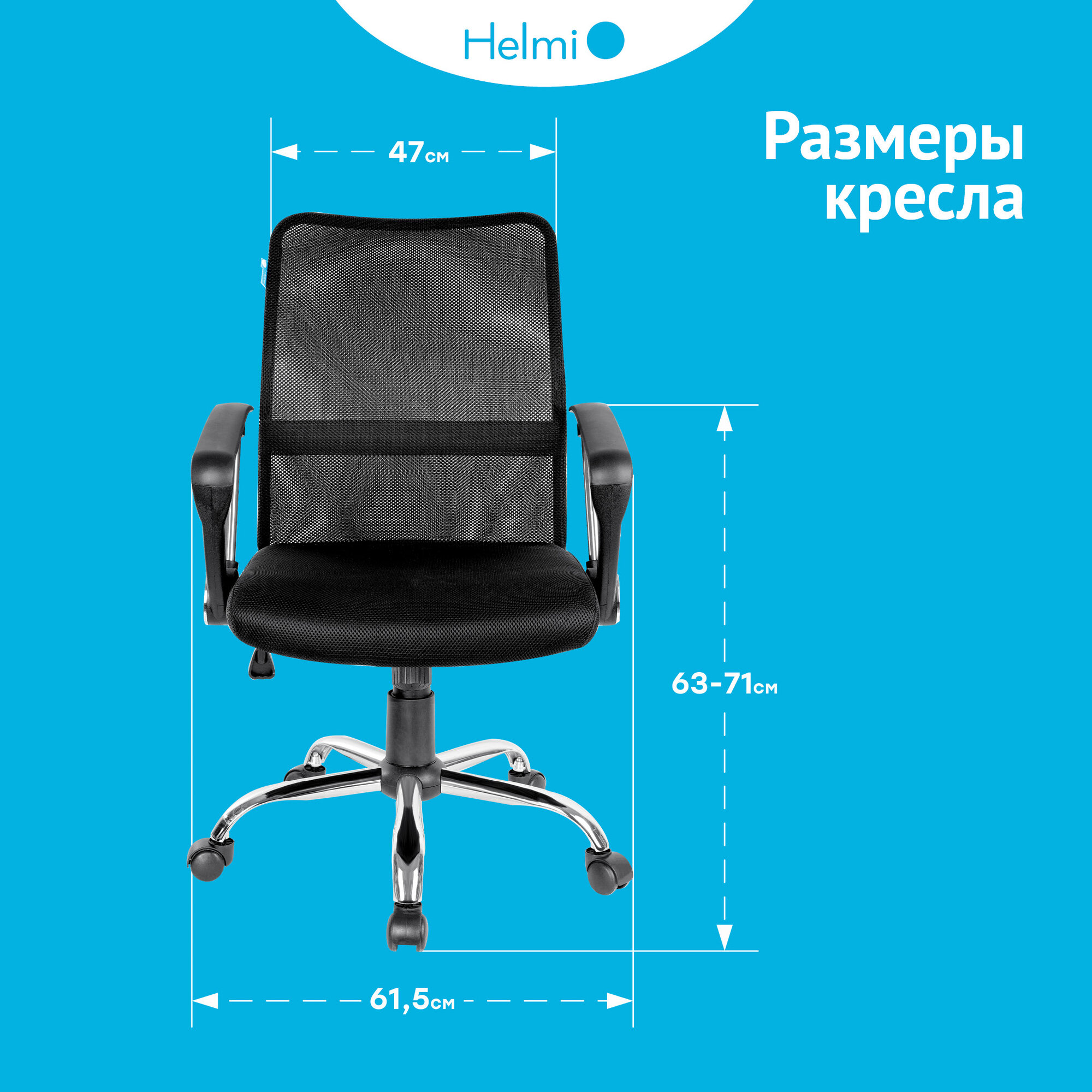 Кресло оператора Helmi HL-M09, ткань/сетка черная, механизм качания, хром