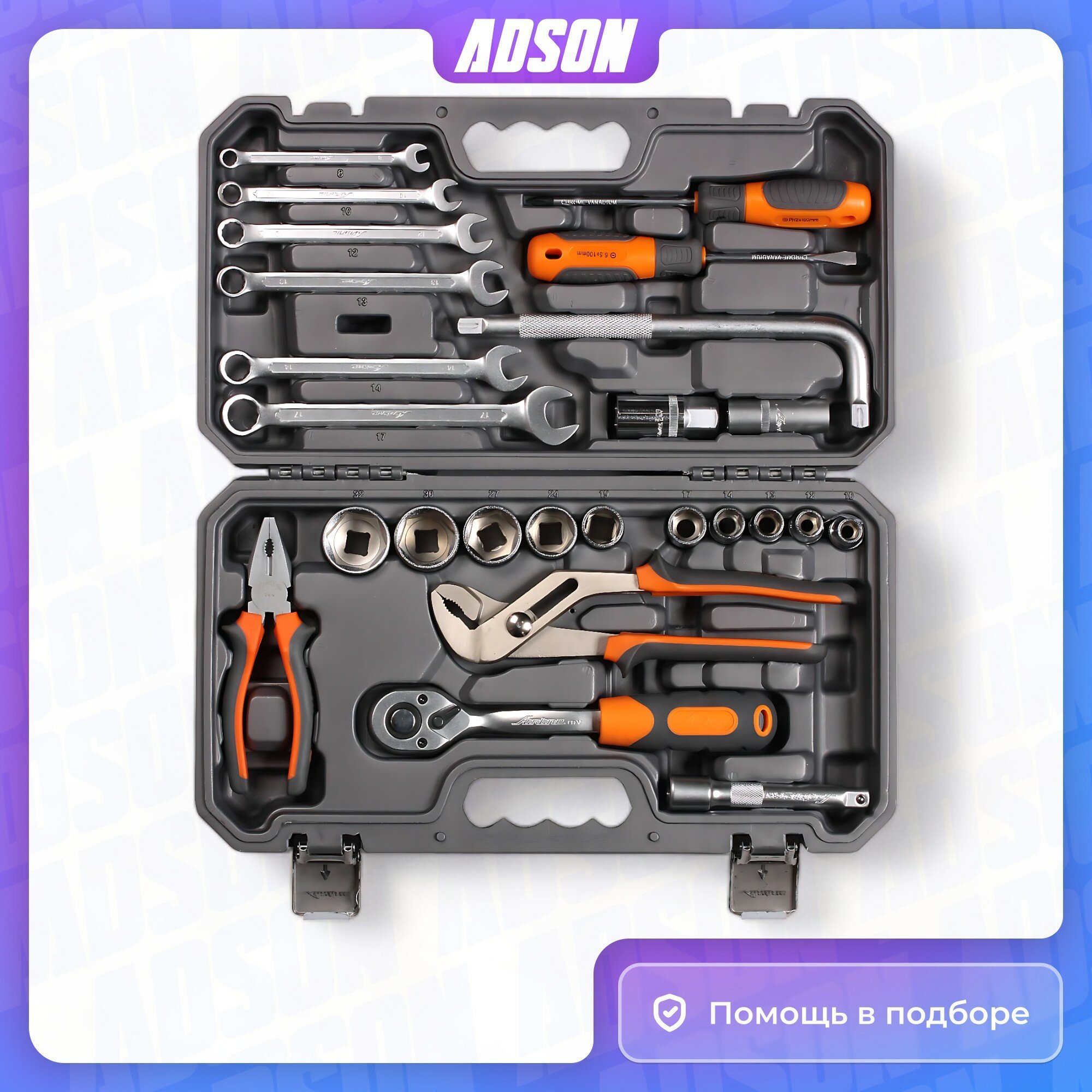 Набор инструментов AUTOVIRAZH AV Steel 1/2 профессиональный 32 предмета