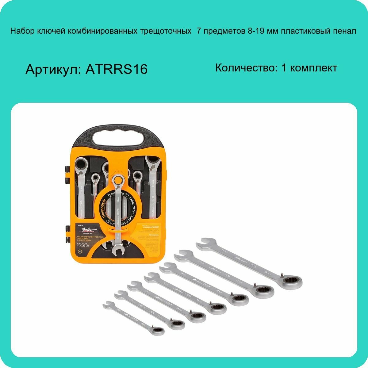 Набор ключей комбинированных трещоточных с переключателем 7 предметов (8,10,12,13,14,17,19мм) пласт. пенал (AT-RRS-16)