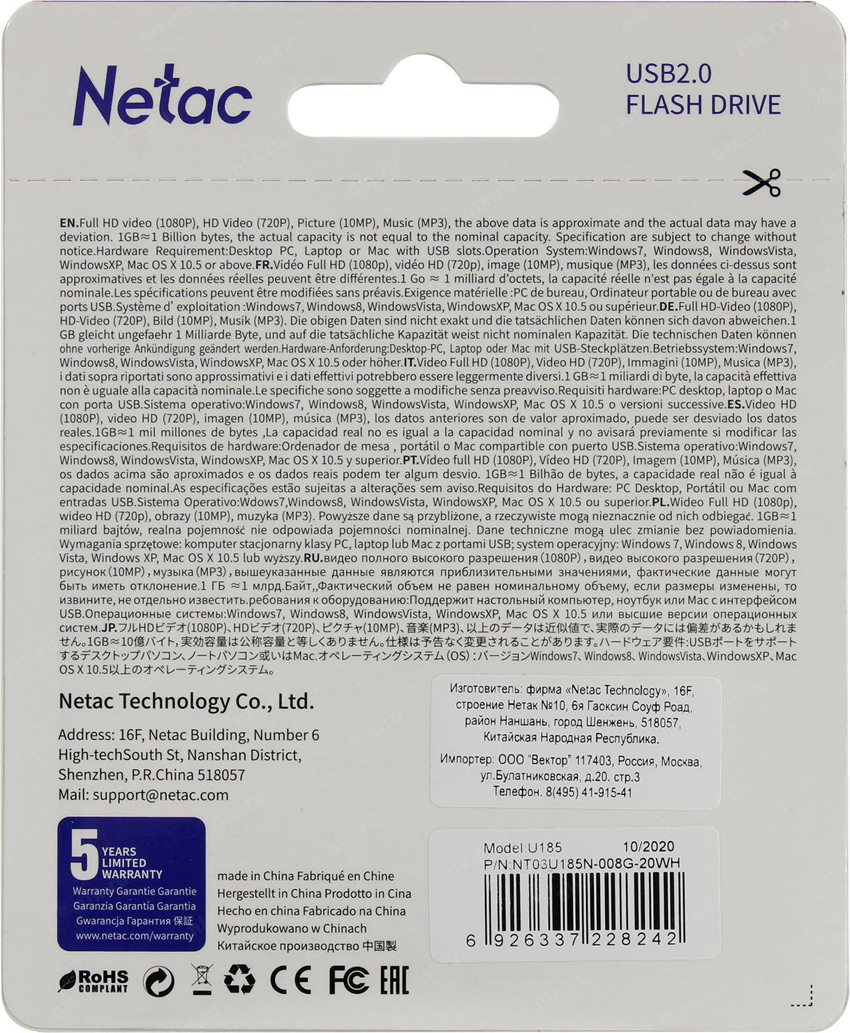 Netac U185 NT03U185N-008G-20WH Флешка USB Flash