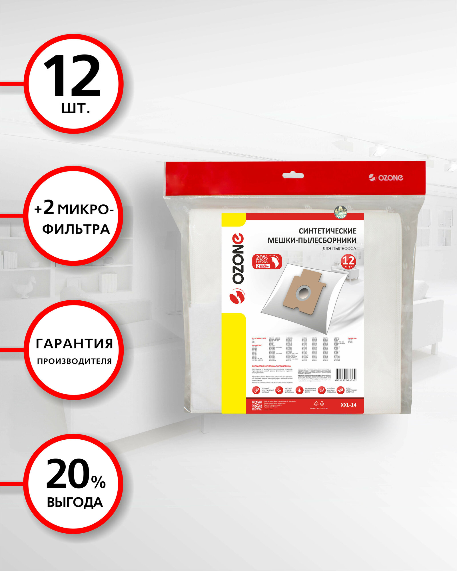 Ozone Мешки-пылесборники синтетические для пылесоса, 12 шт плюс 2 микрофильтра XXL-14