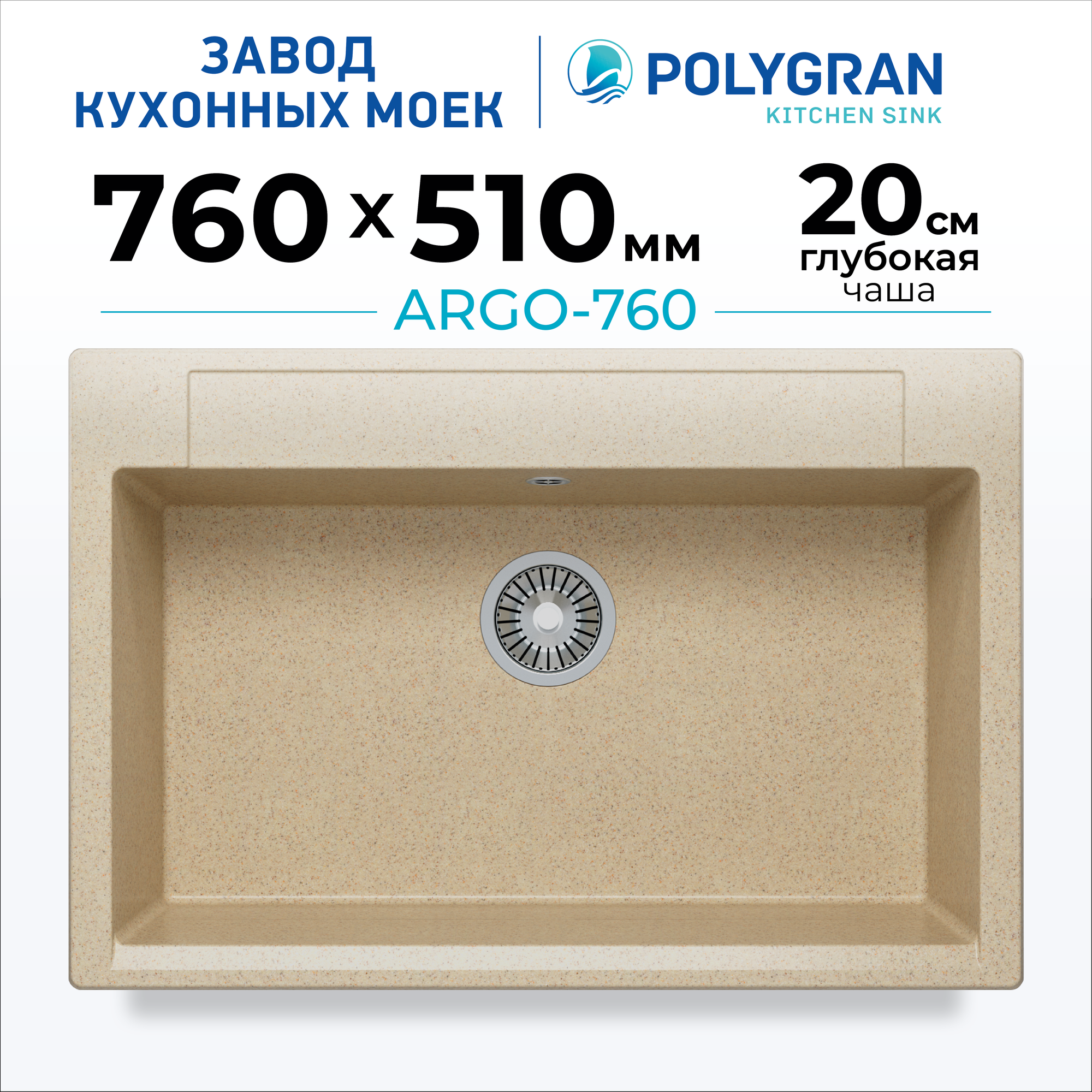 Кухонная мойка из искусственного камня POLYGRAN ARGO-760 (№327 Кремовый)