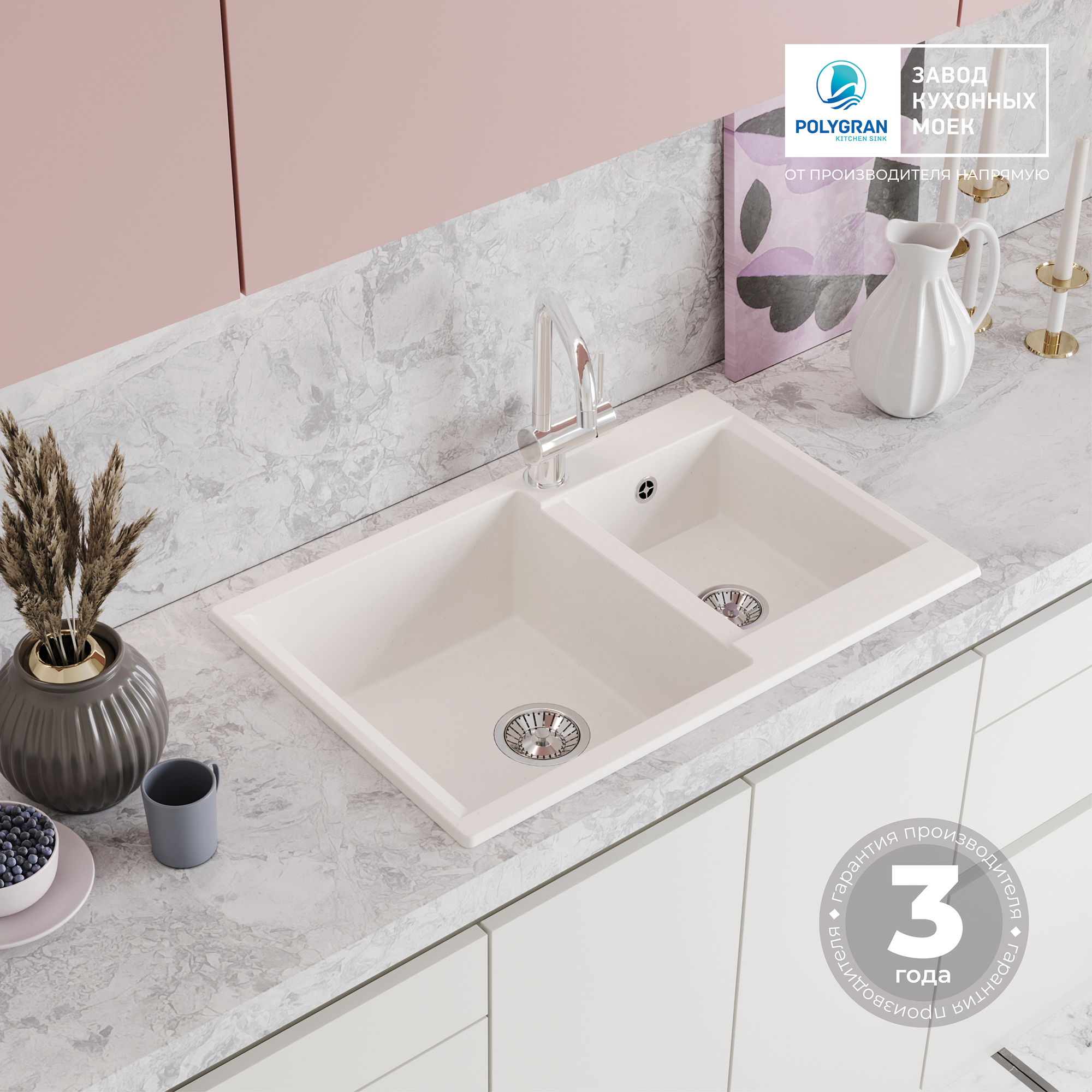 Мойка POLYGRAN Brig-772 белый хлопок