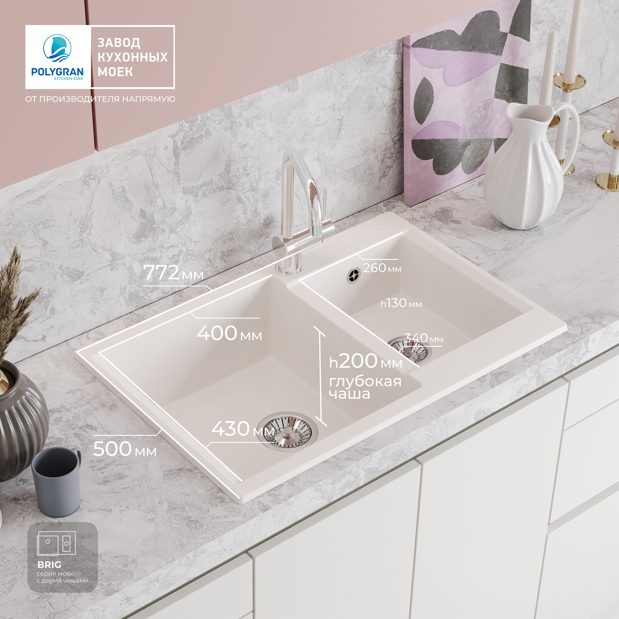 Мойки Polygran BRIG-772, мойка, мрамор, черный 16