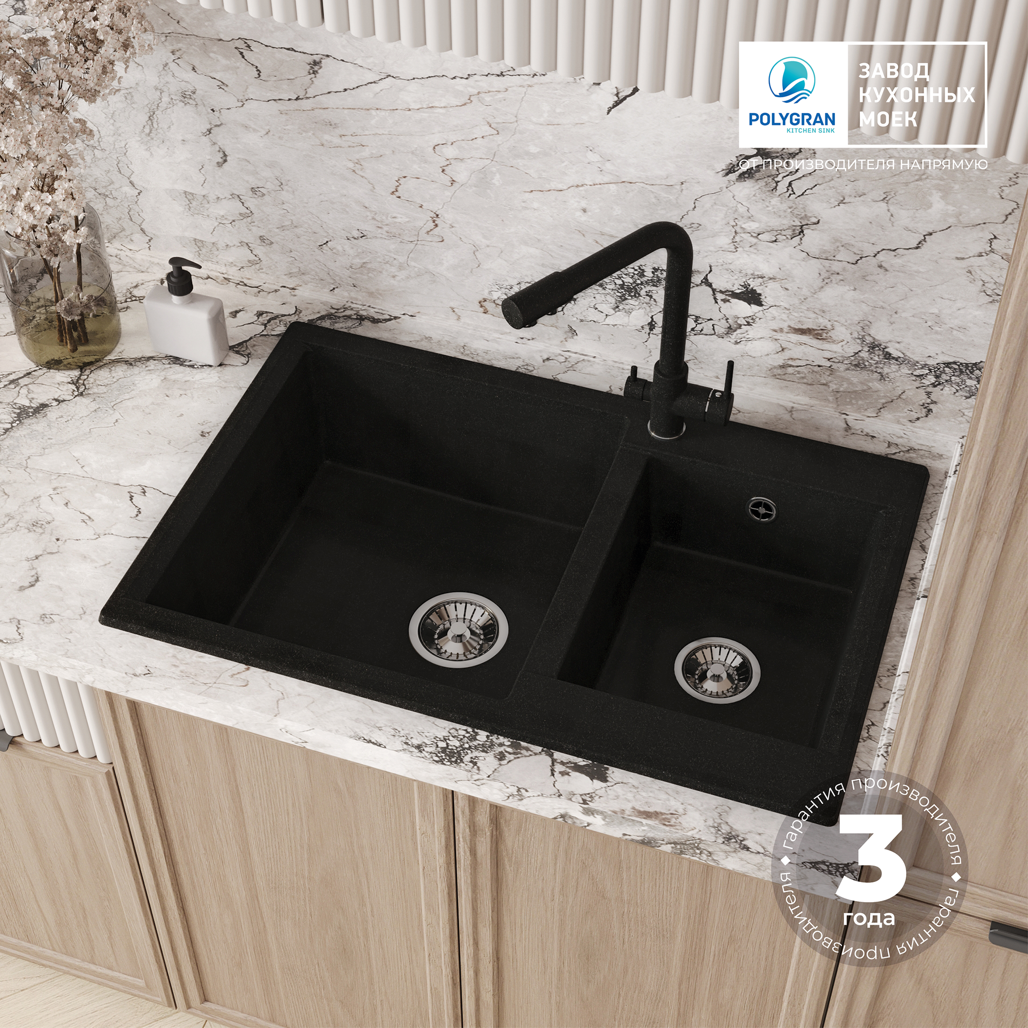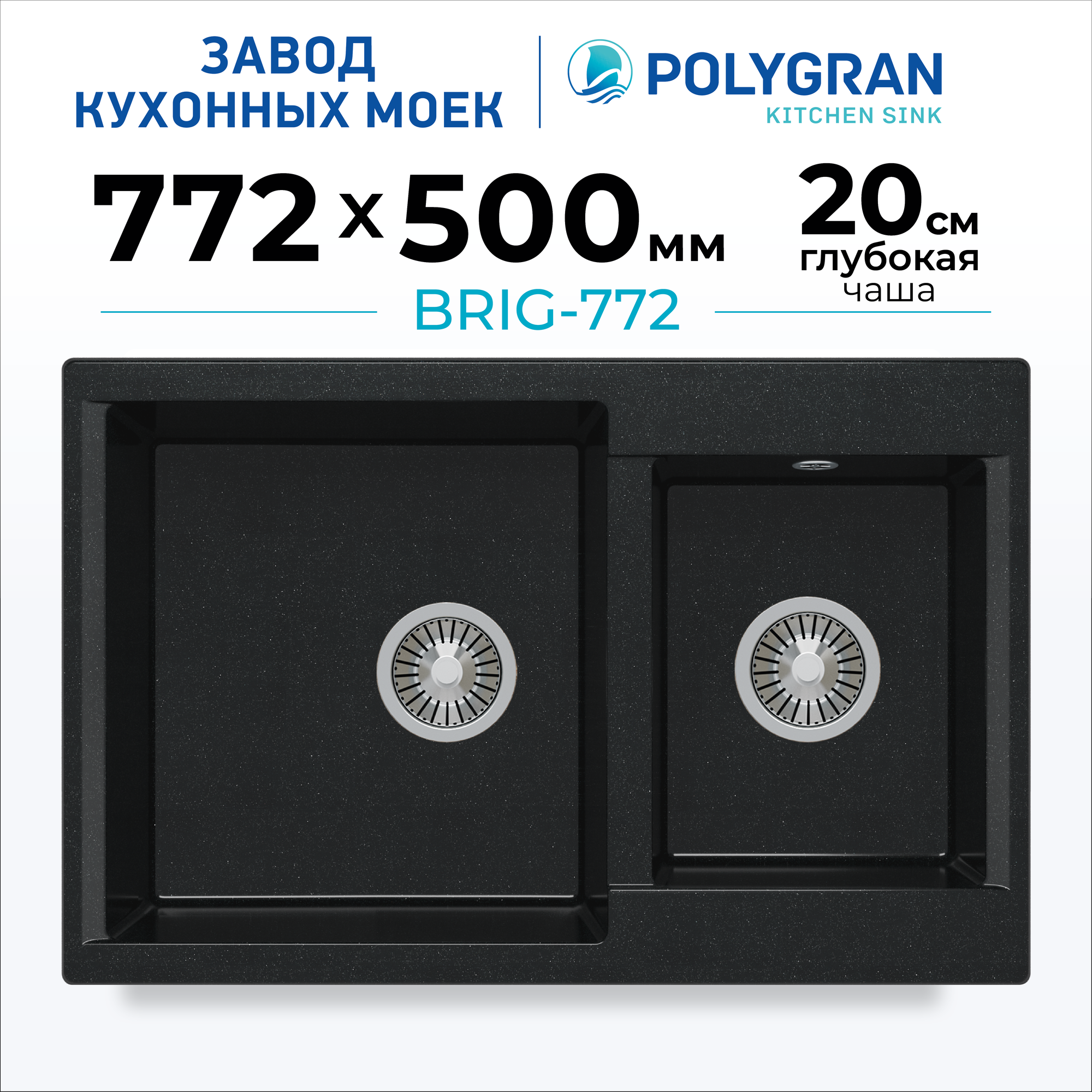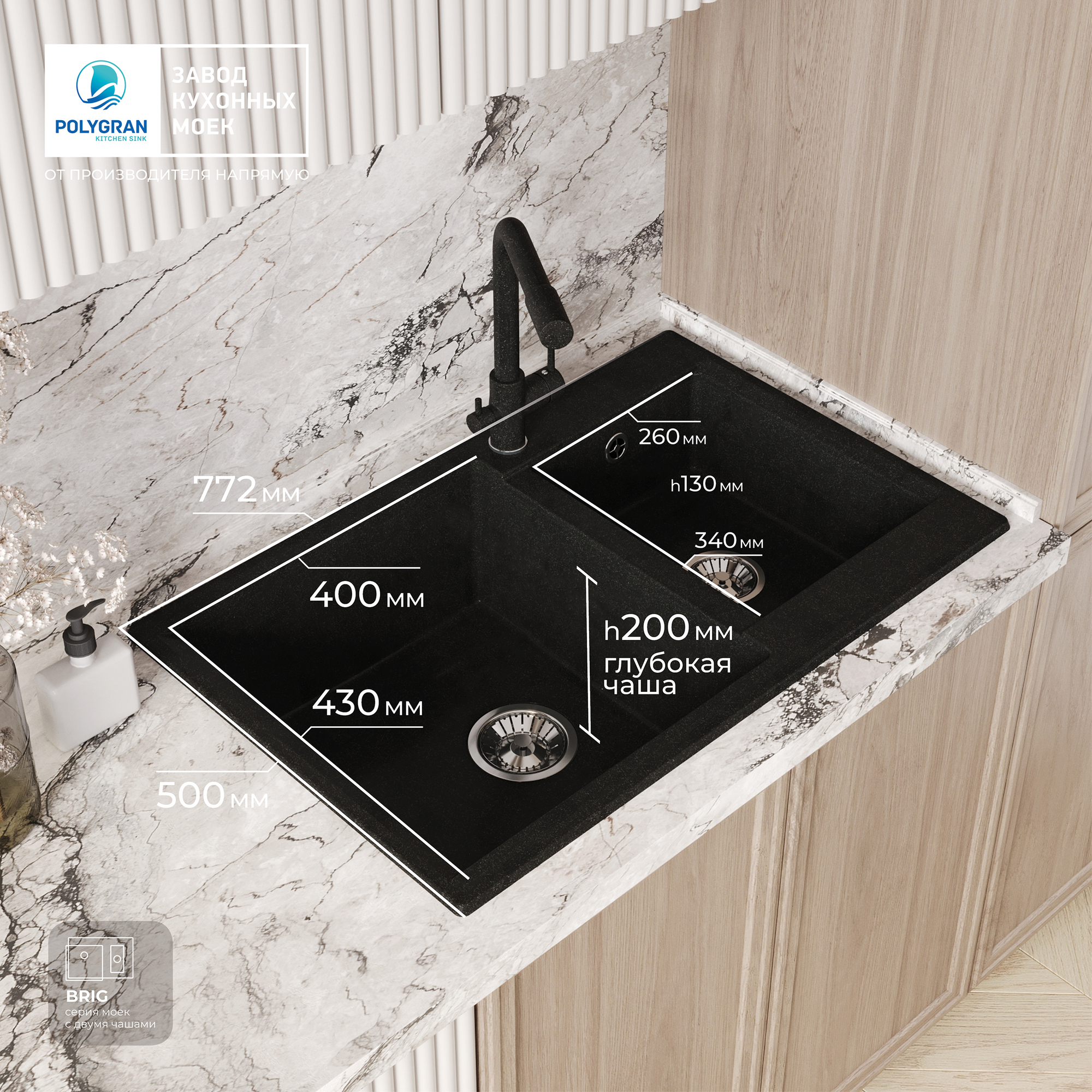 Мойки Polygran BRIG-772, мойка, мрамор, черный 16