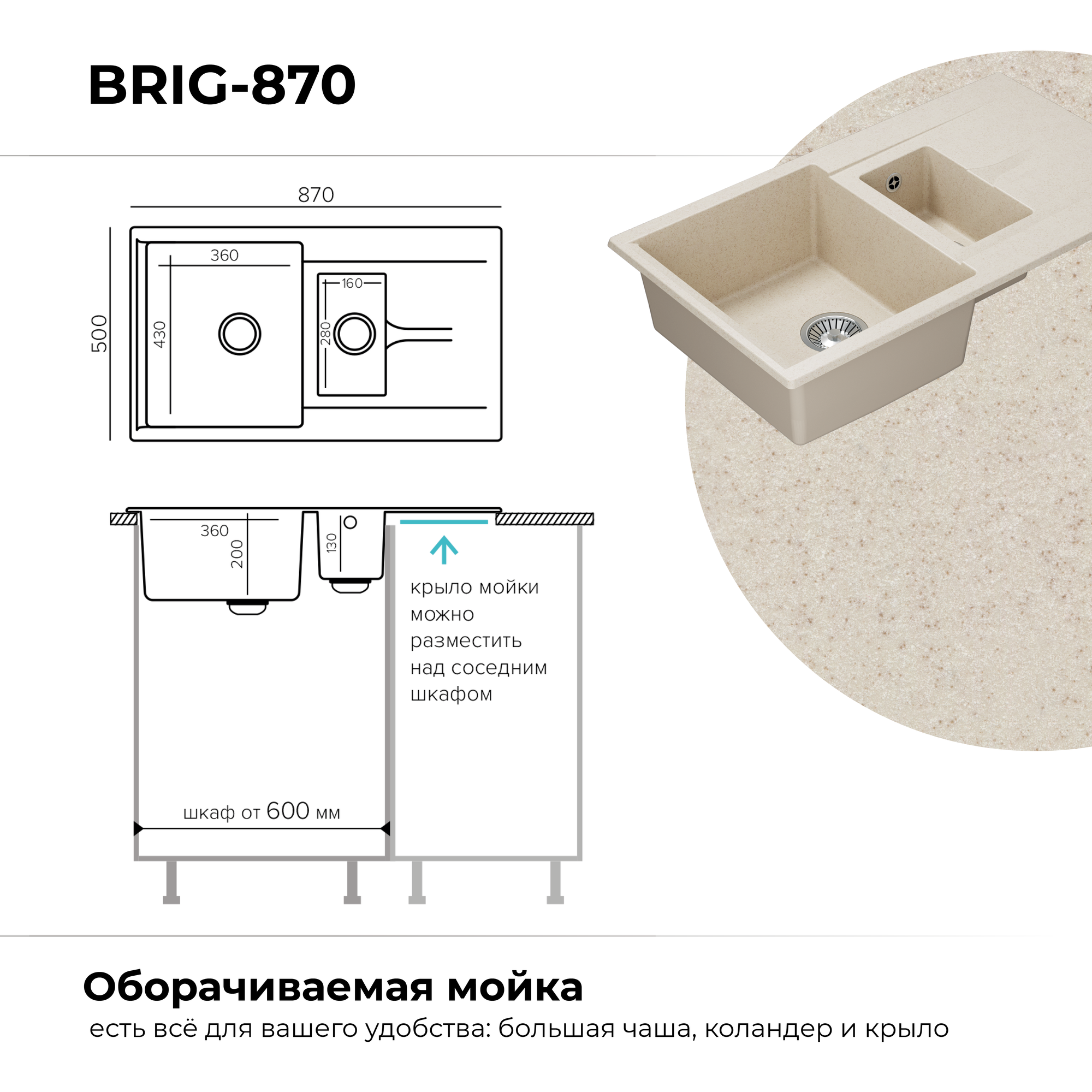 Мойка кухонная Brig-870 Белый хлопок № 36