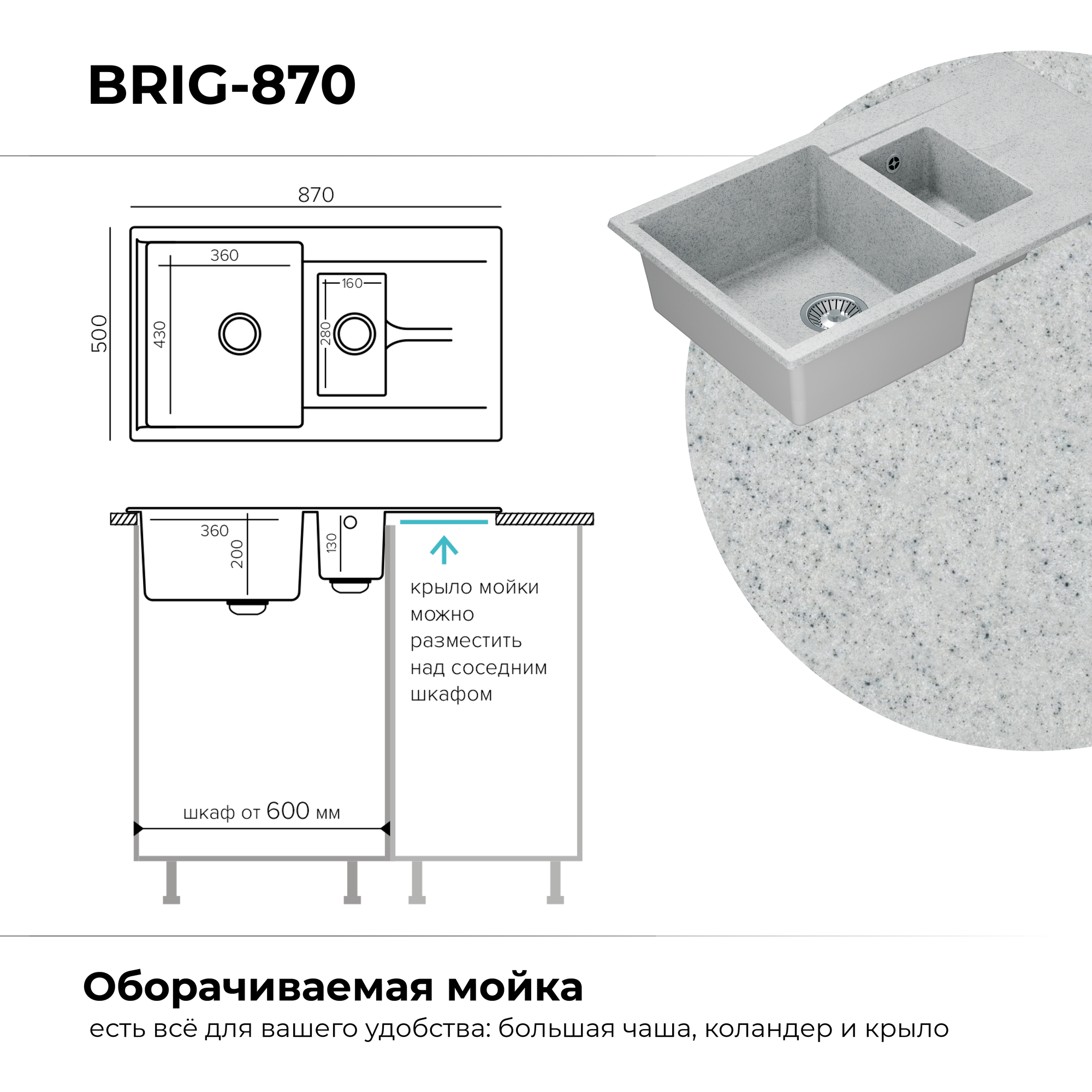 Мойка кухонная Brig-870 Белый хлопок № 36