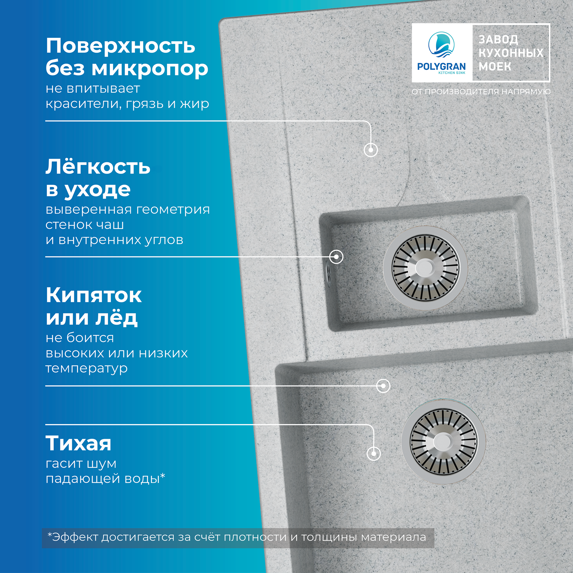 СохранитьКухонная мойка Polygran BRIG-870 (№314 Светло-серый) интересное: