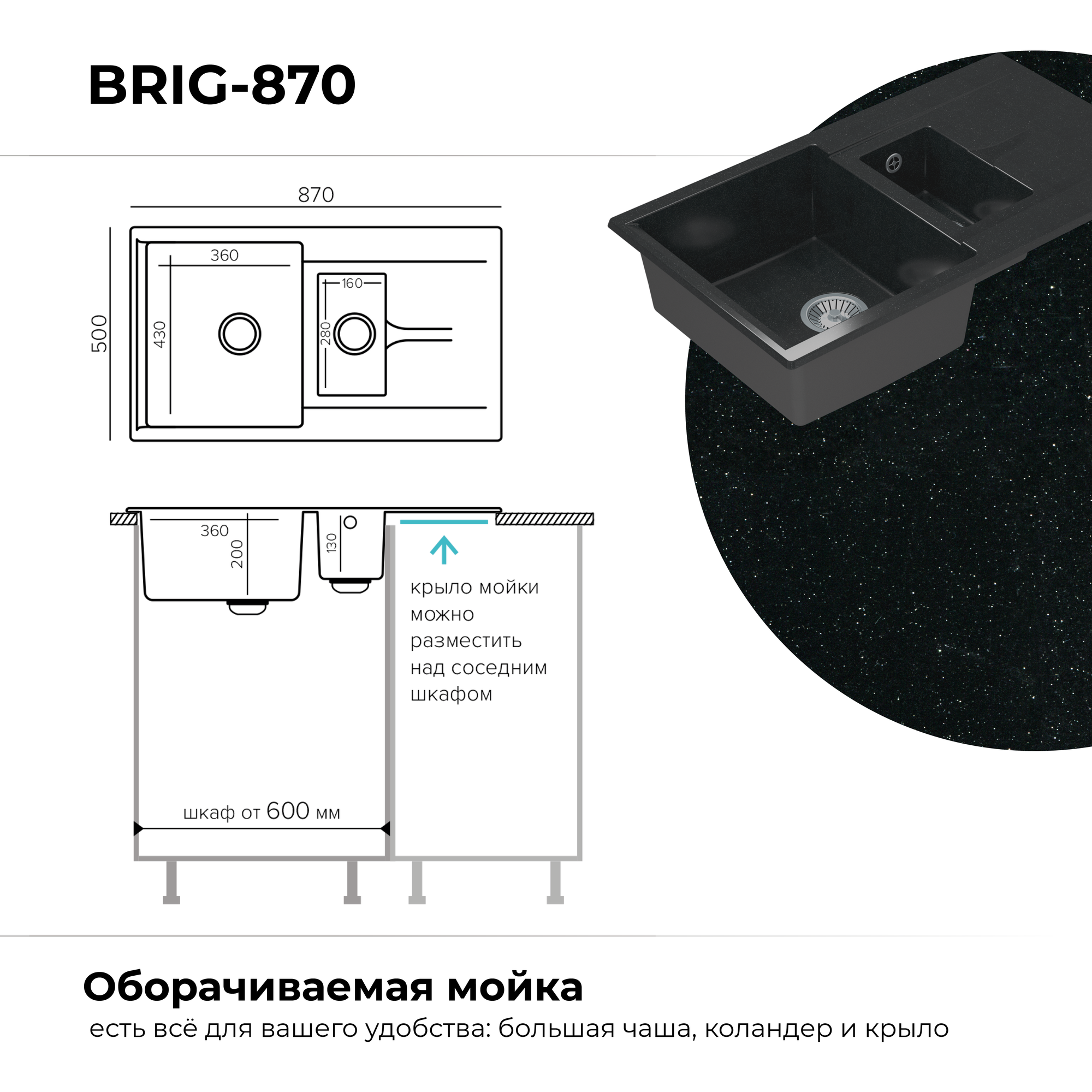 Мойка для кухни Polygran BRIG-870 черный 627383