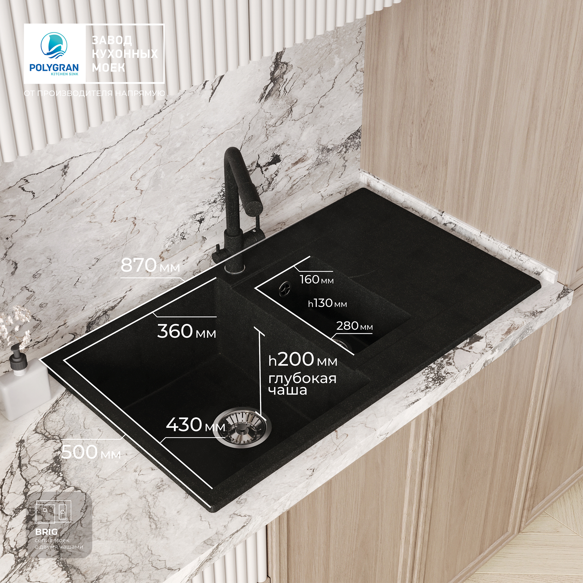 Кухонная мойка Polygran BRIG-870 №16 Черный 627383