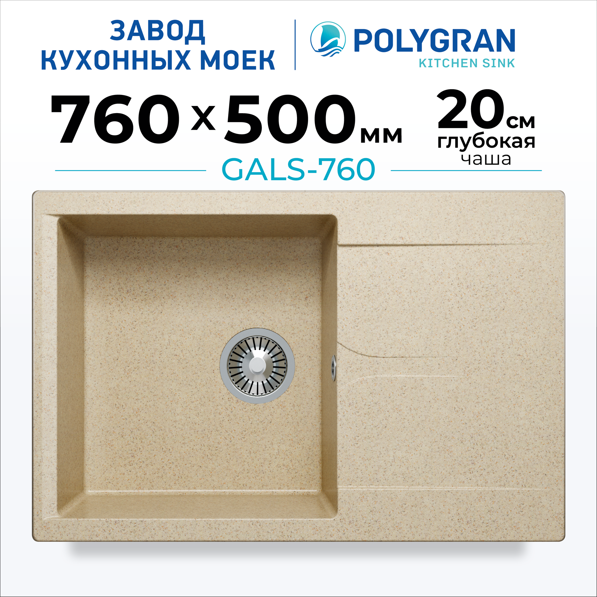 Мойка для кухни POLYGRAN Gals-760 каменная, врезная, раковина кухонная с крылом (№327 Кремовый)