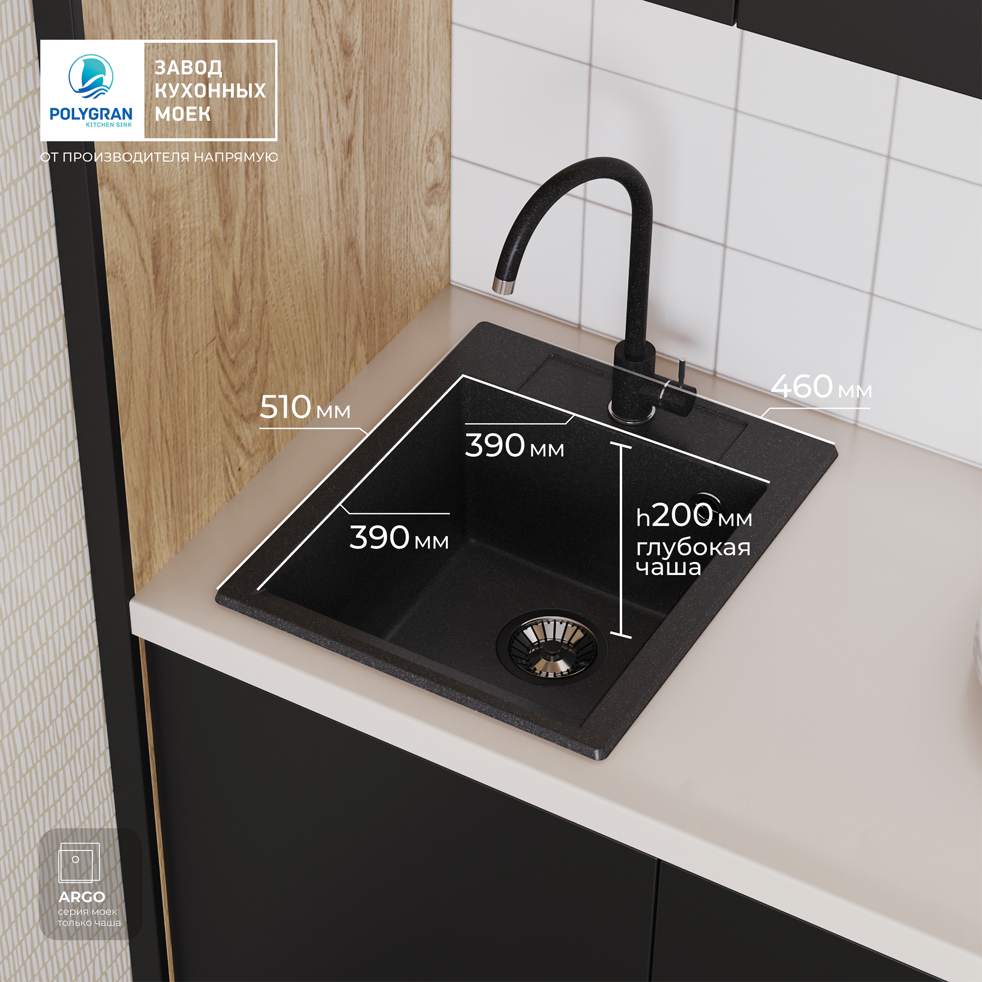 46х51см, Polygran Argo-460, матовое черный 16