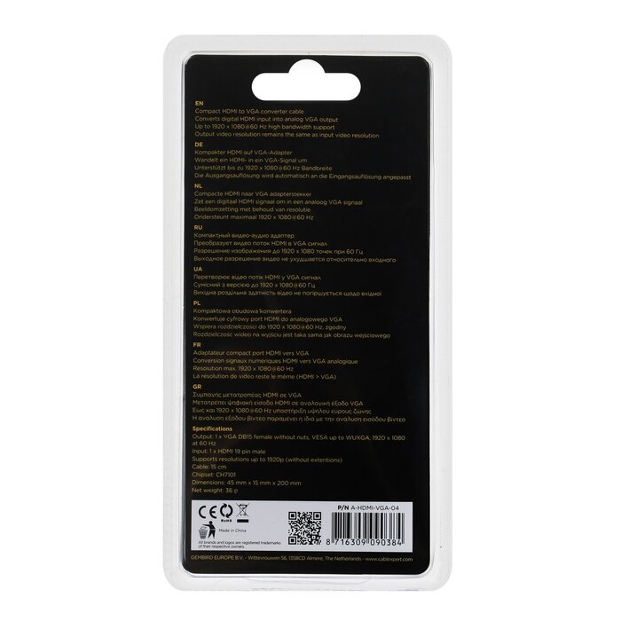 Купить Gembird Cablexpert HDMI-VGA 19M/15F A-HDMI-VGA-04