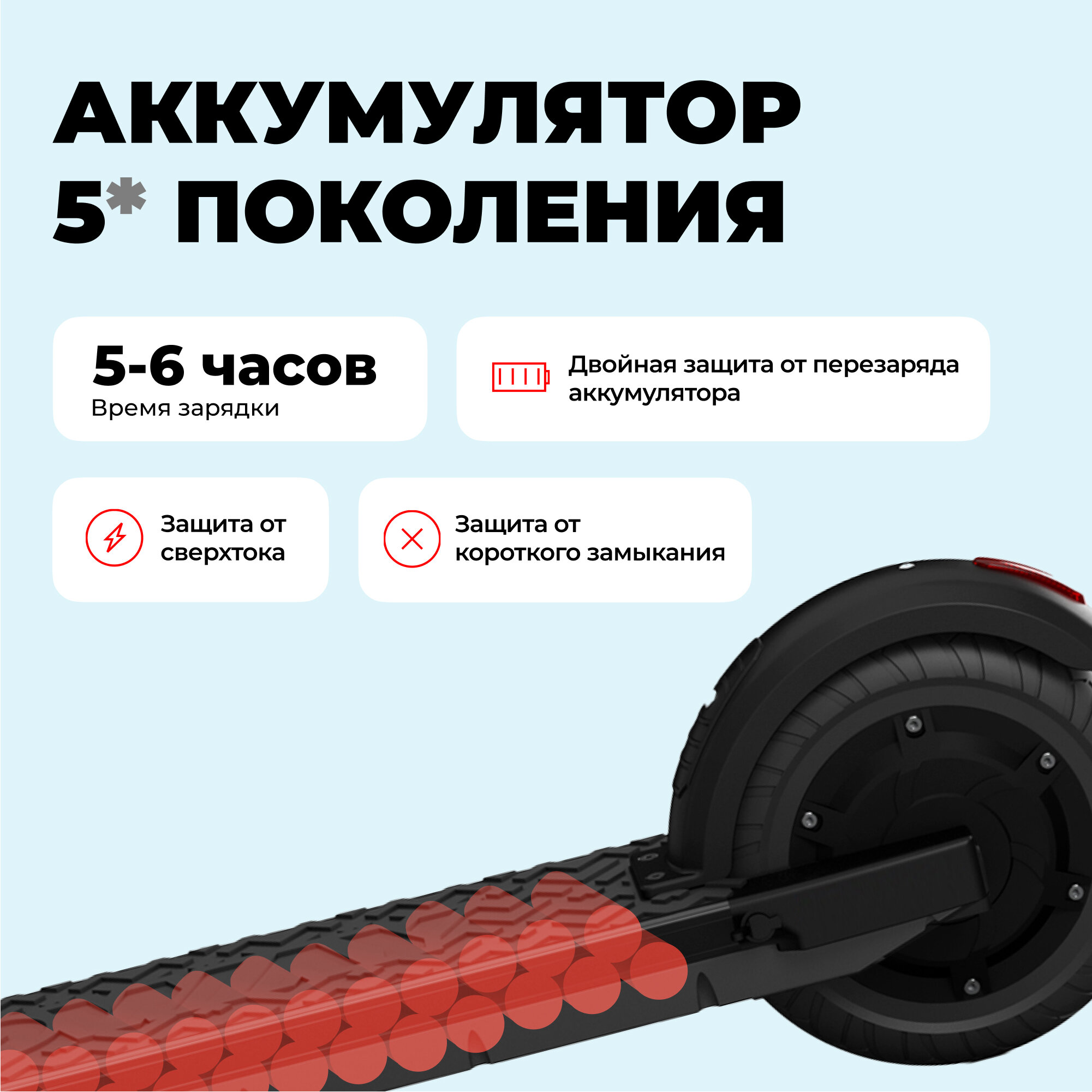 | Плюсы: | Ёмкий аккумулятор, длинная прорезиненная дека, приятные грипсы, шустрый. |