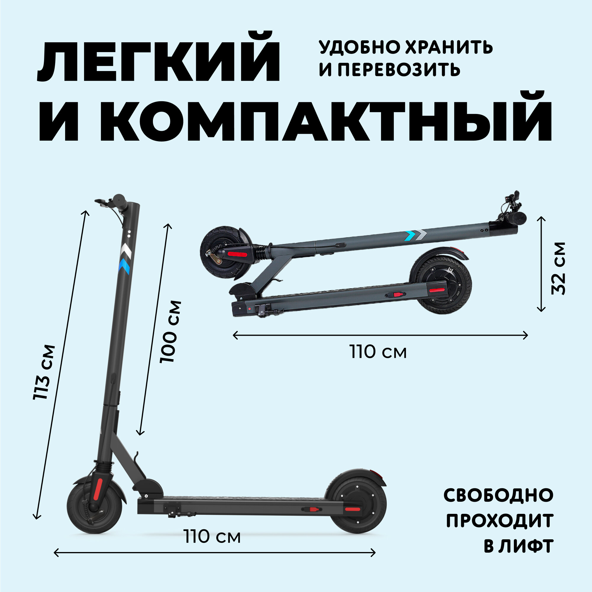 | Плюсы: | запас хода, разгонял до 30 км/час, амортизация хорошая, стильный, подходит и мужчинам и женщинам, легко складывать и переносить. |