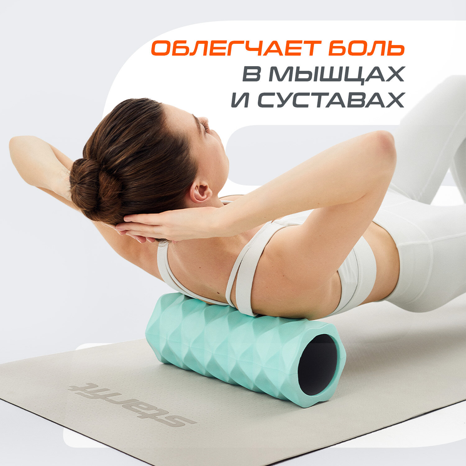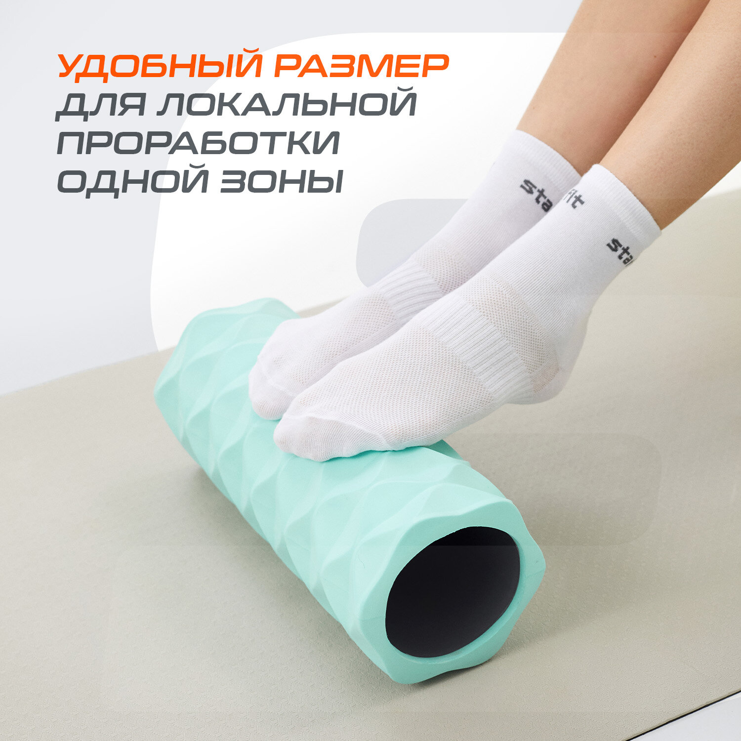 Ролик массажный STARFIT FA-507 EVA/PP, средняя жесткость, 32,5x12,5 cм, мятный/серый
