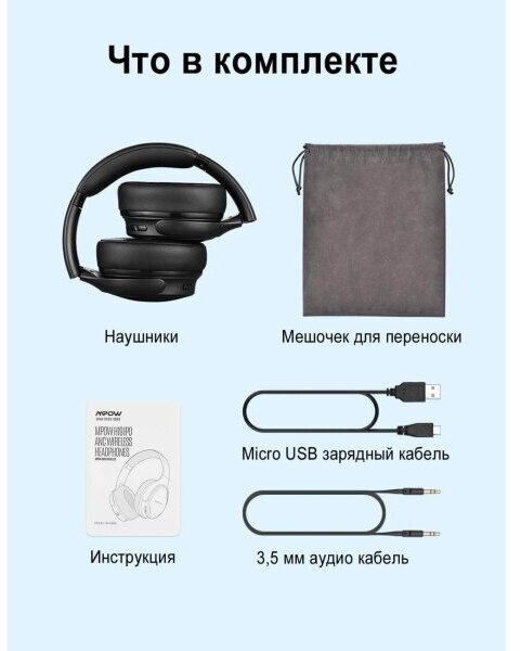 Наушники MPOW H19 IPO, 3.5 мм/Bluetooth, накладные, черный [mpbh388ab] интересное: