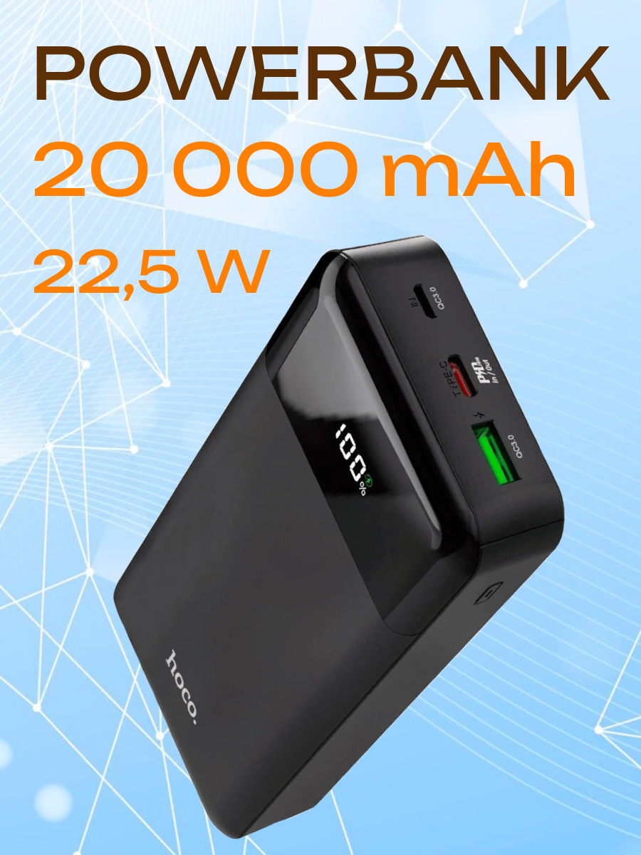 Купить Внешний аккумулятор HOCO J102A 20000 mAh 20W "быстрая зарядка" черный