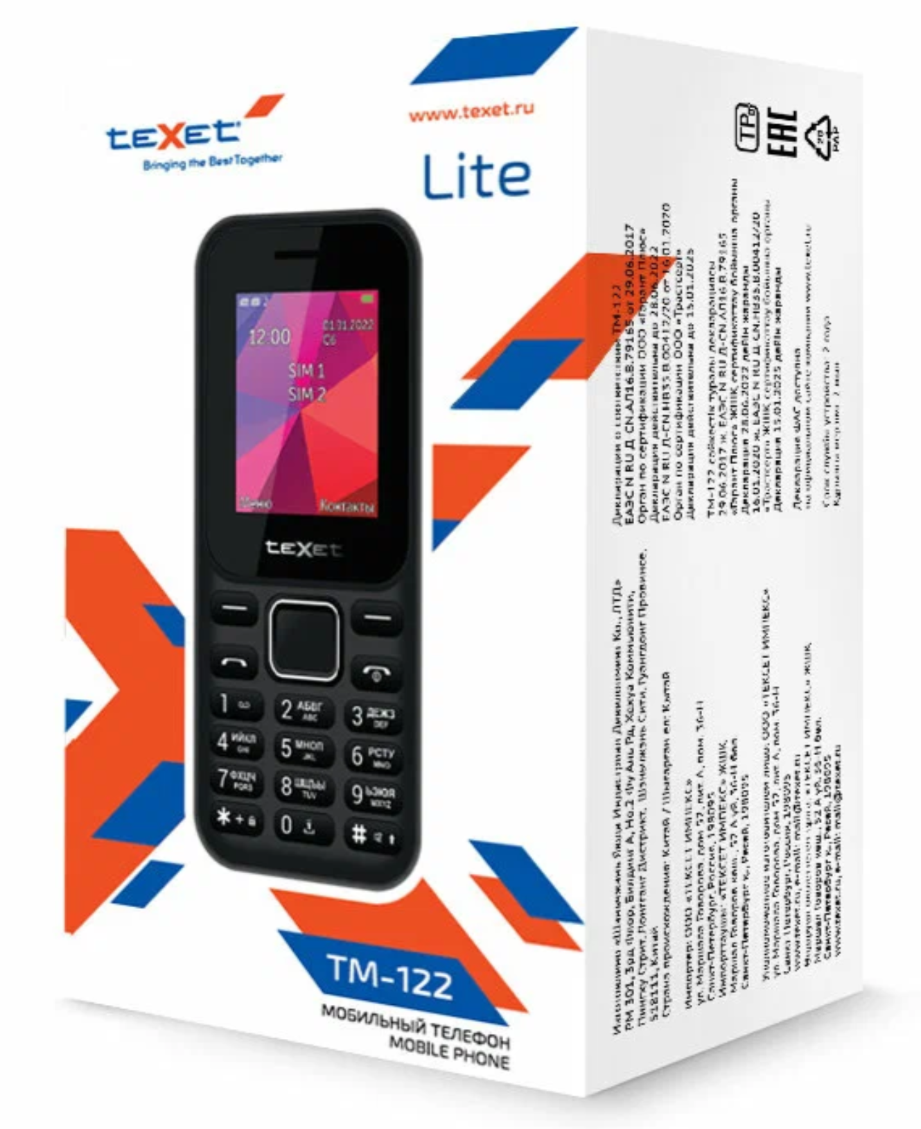 Texet Мобильный телефон TM-122 Мобильный телефон цвет черный