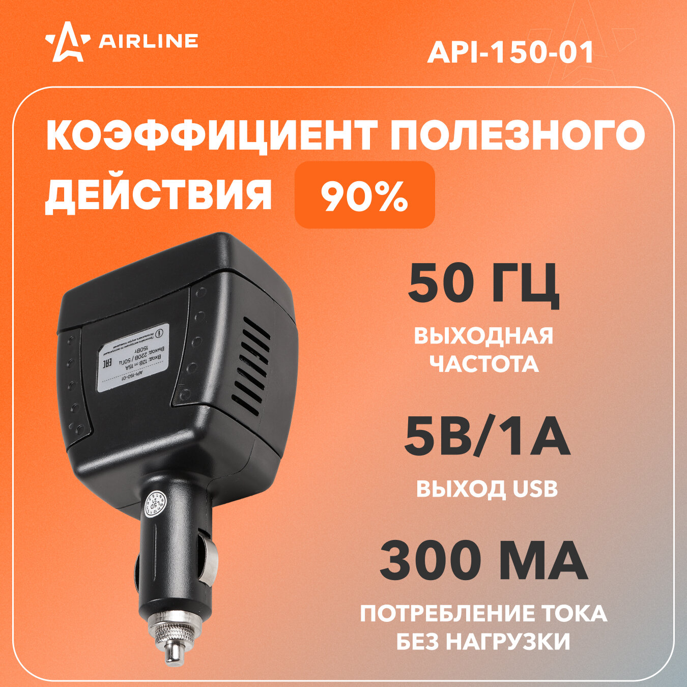 API15001 AIRLINE Инвертор 12В-220В, 150 Вт (API-150-01)