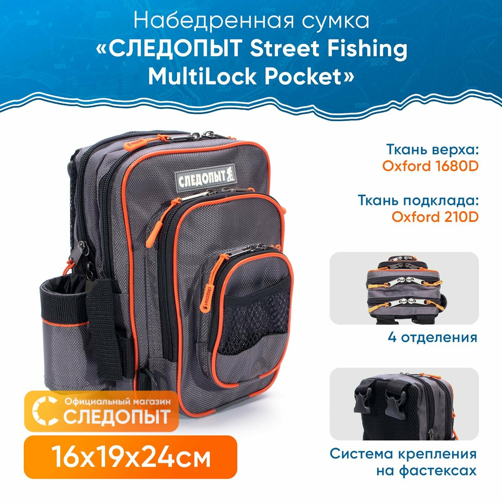 Сумка рыболовная набедренная следопыт Street Fishing MultiLock Pocket, 16х19х24 см / Сумка для снастей