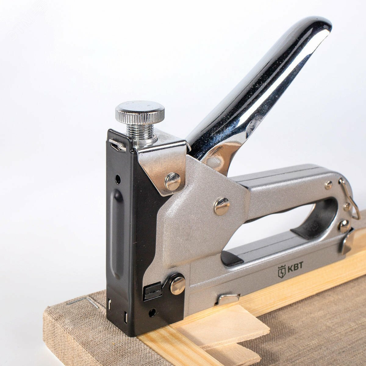 Строительный степлер мебельный ручной с регулировкой силы удара КВТ СТС-1 79853 Профессиональный, стальной, гвоздизабивной