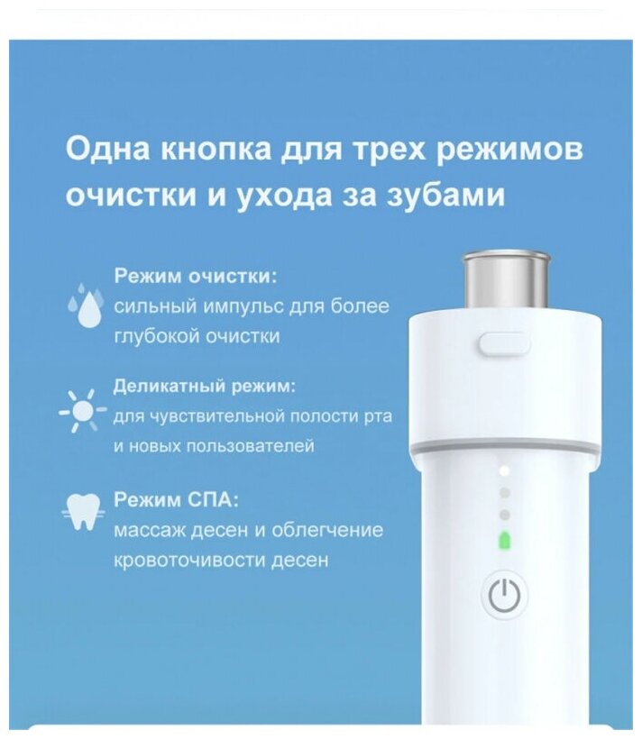 | Отзыв: | Купил по рекомендации стоматолога. Отличное качество сборки. мощный напор воды идеально вычищает пространство между зубов. поток воды можно регулировать. Отлично держит зарядку. Рекомендую для использования очень полезный гаджет. |