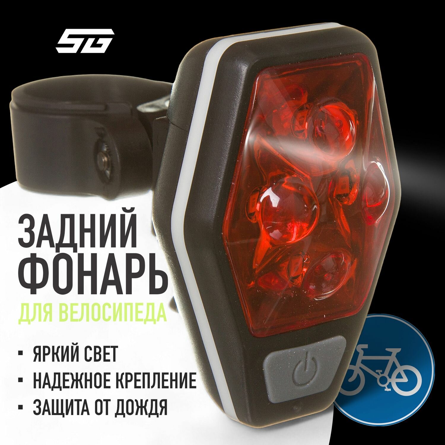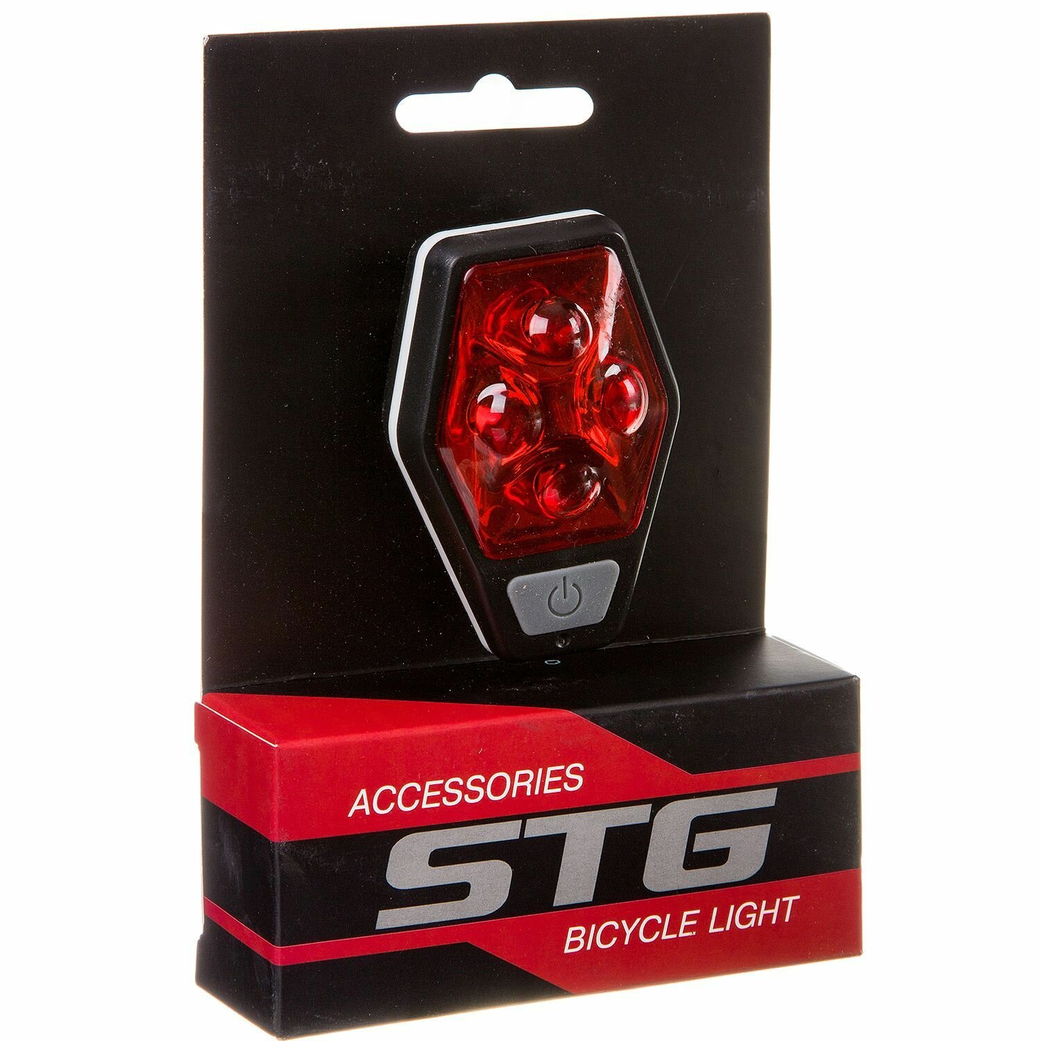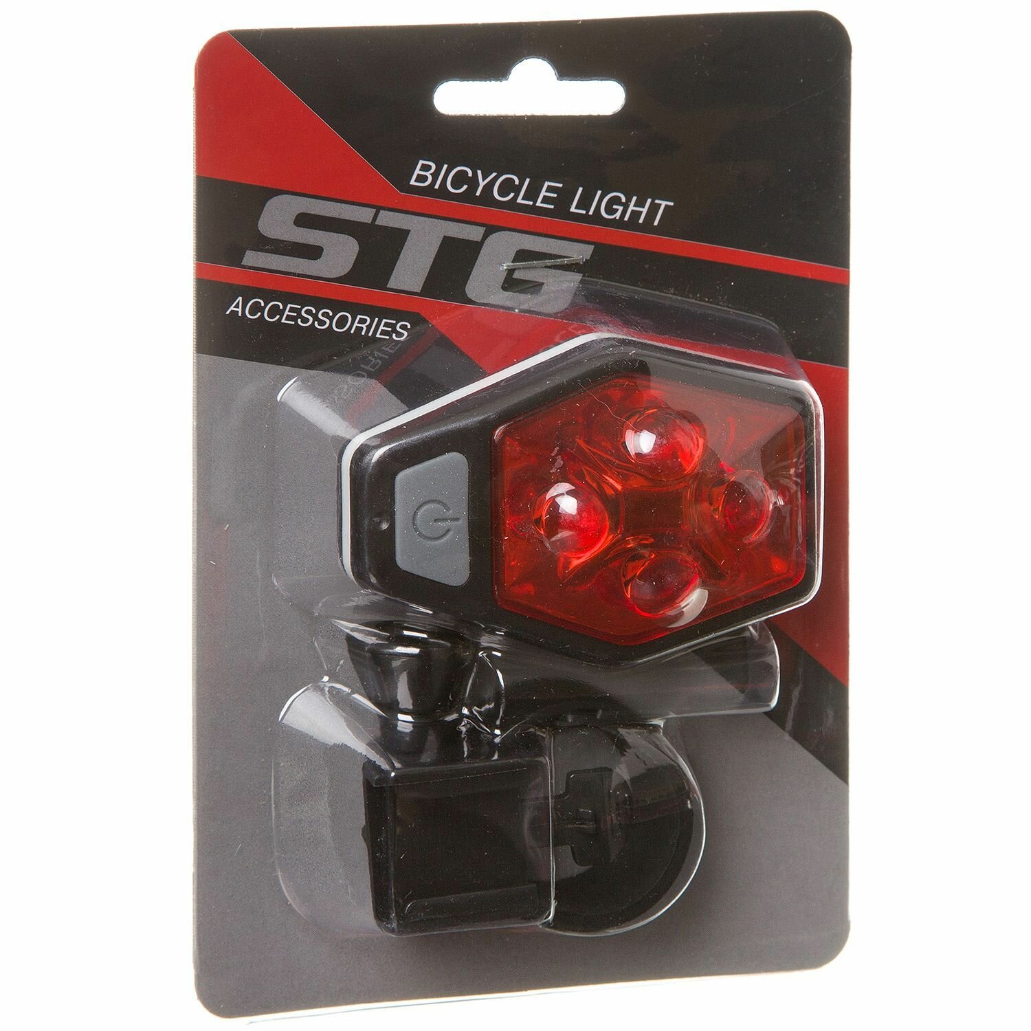 Фонарь велосипедный STG задний, TL5437, 4 красных диода, с линзами, прорезиненная кнопка