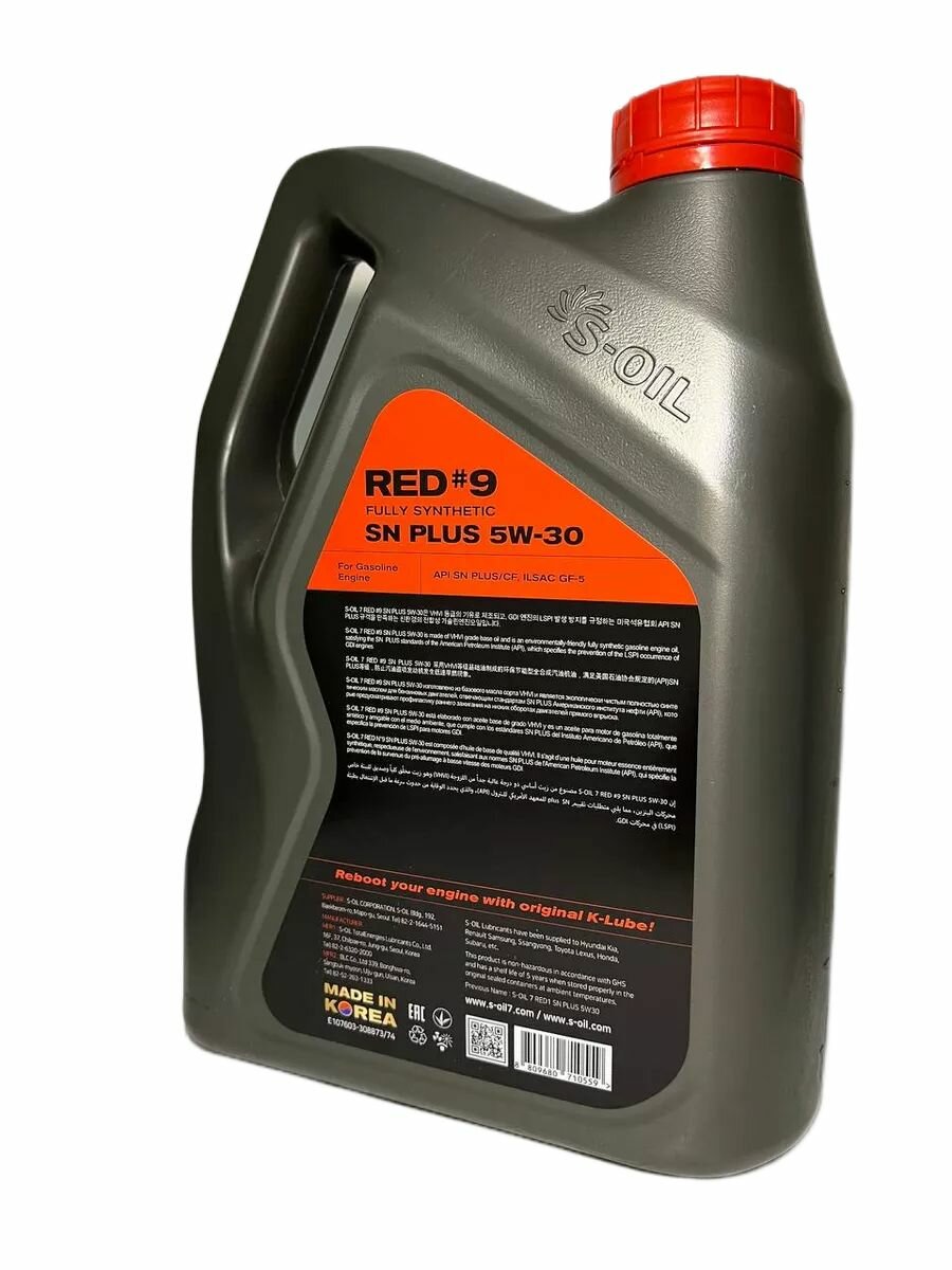 S-OIL E107603 E107603 масло моторное 5W30 S-OIL 7 RED 9 SN PLUS 4л API SN PLUSCF, ILSAC GF-5