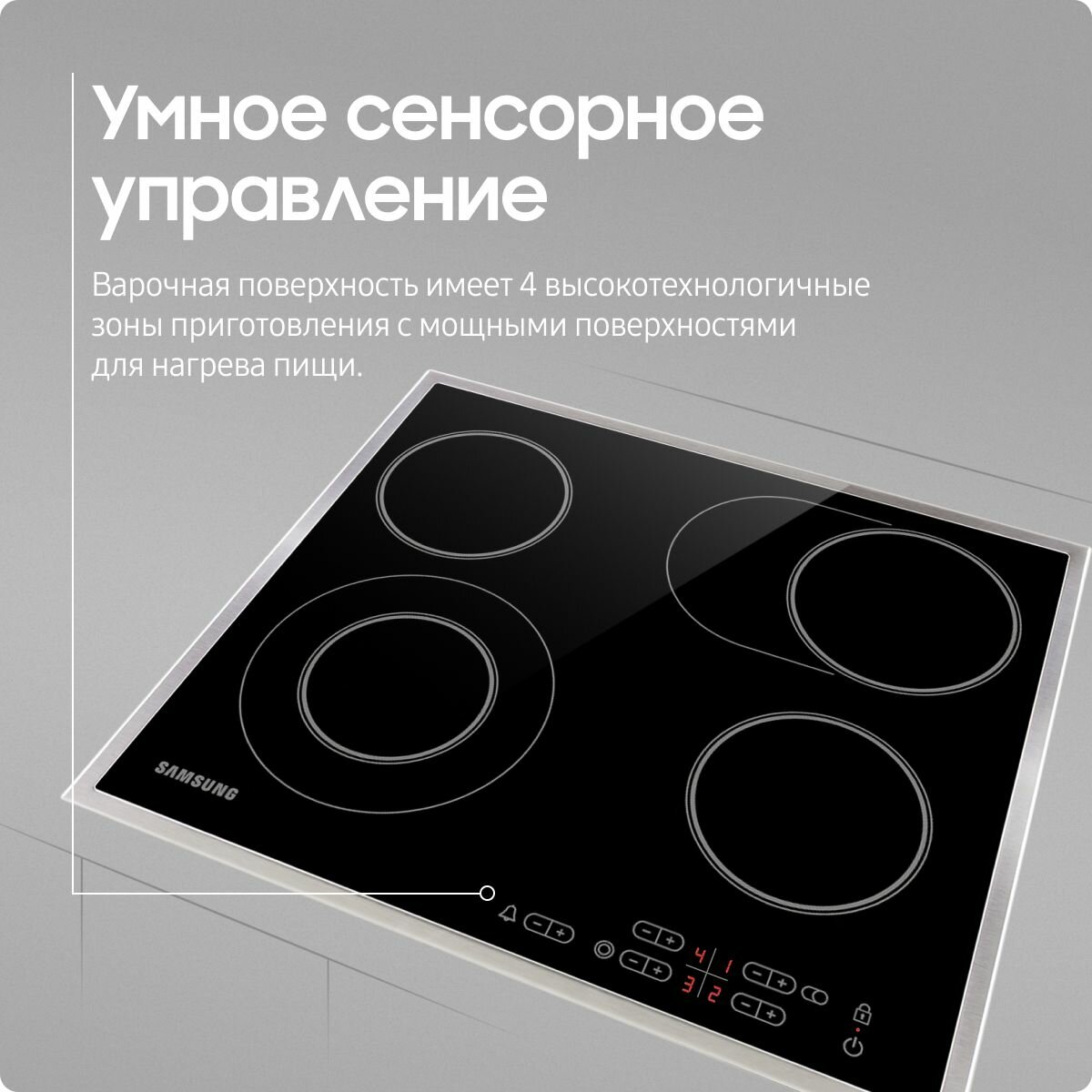 Электрическая варочная поверхность Samsung NZ-64T3516CK/WT, 60 см, с зонами расширения и металлической рамкой