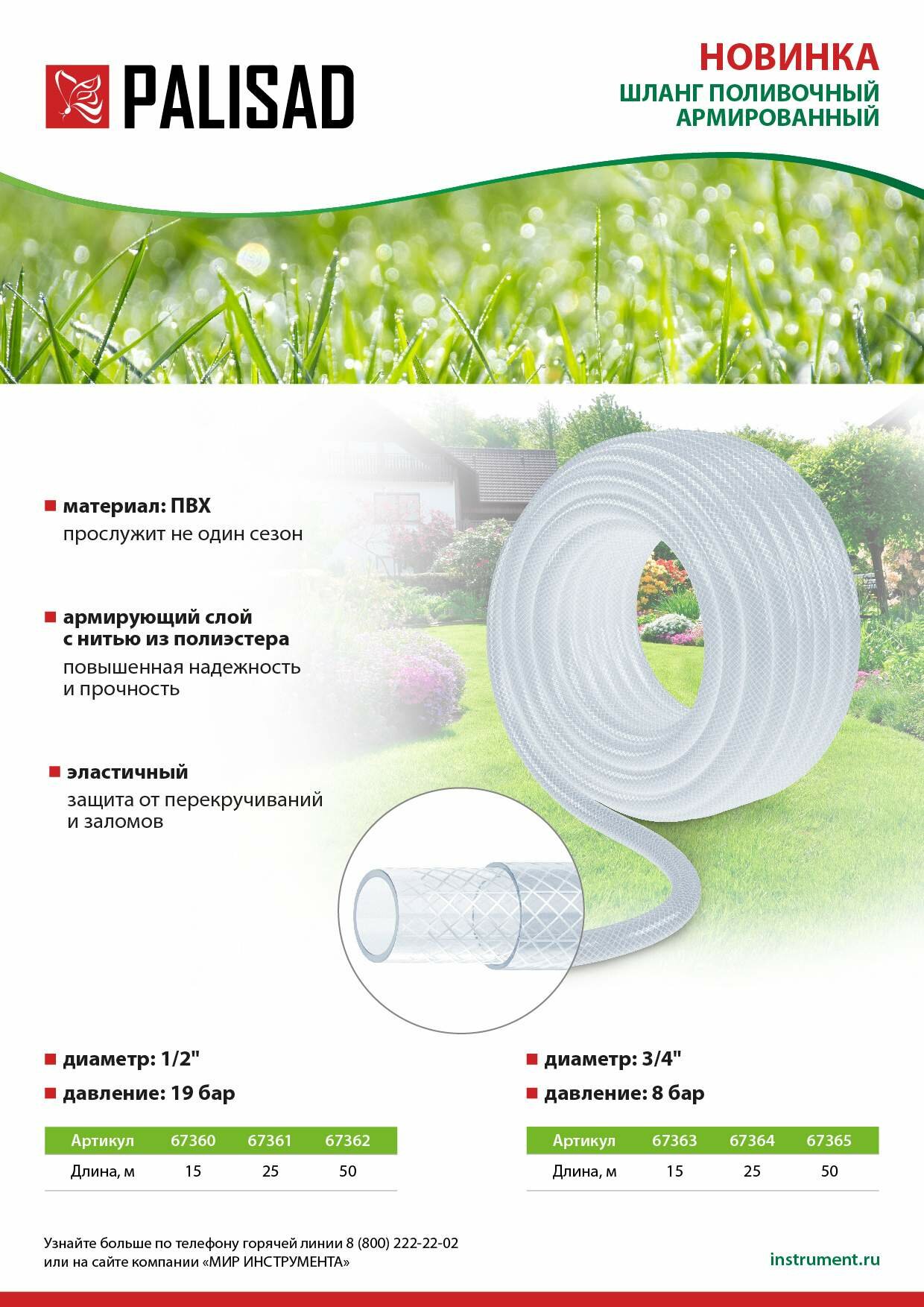 Шланг Palisad поливочный армированный 3-х слойный 1/2" 50 м 67362 интересное: