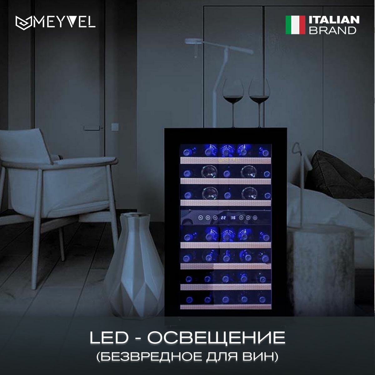 Винный холодильный шкаф Meyvel MV45-KBF2 компрессорный (отдельностоящий холодильник для вина на 45 бутылок) интересное: