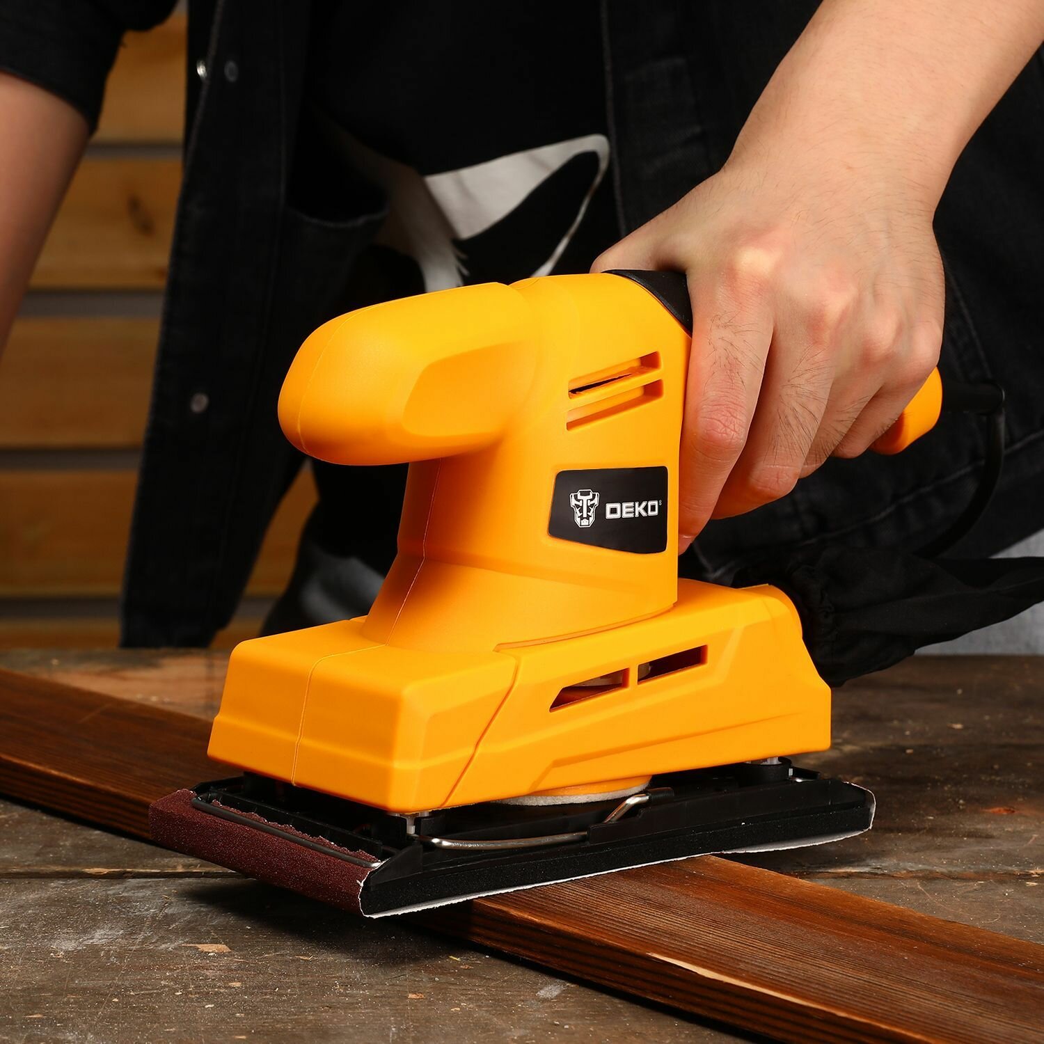 Вибрационная шлифмашина DEKO, пылесборник, блокировка кнопки включения
